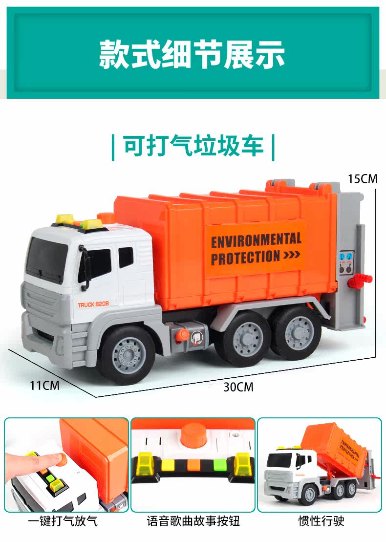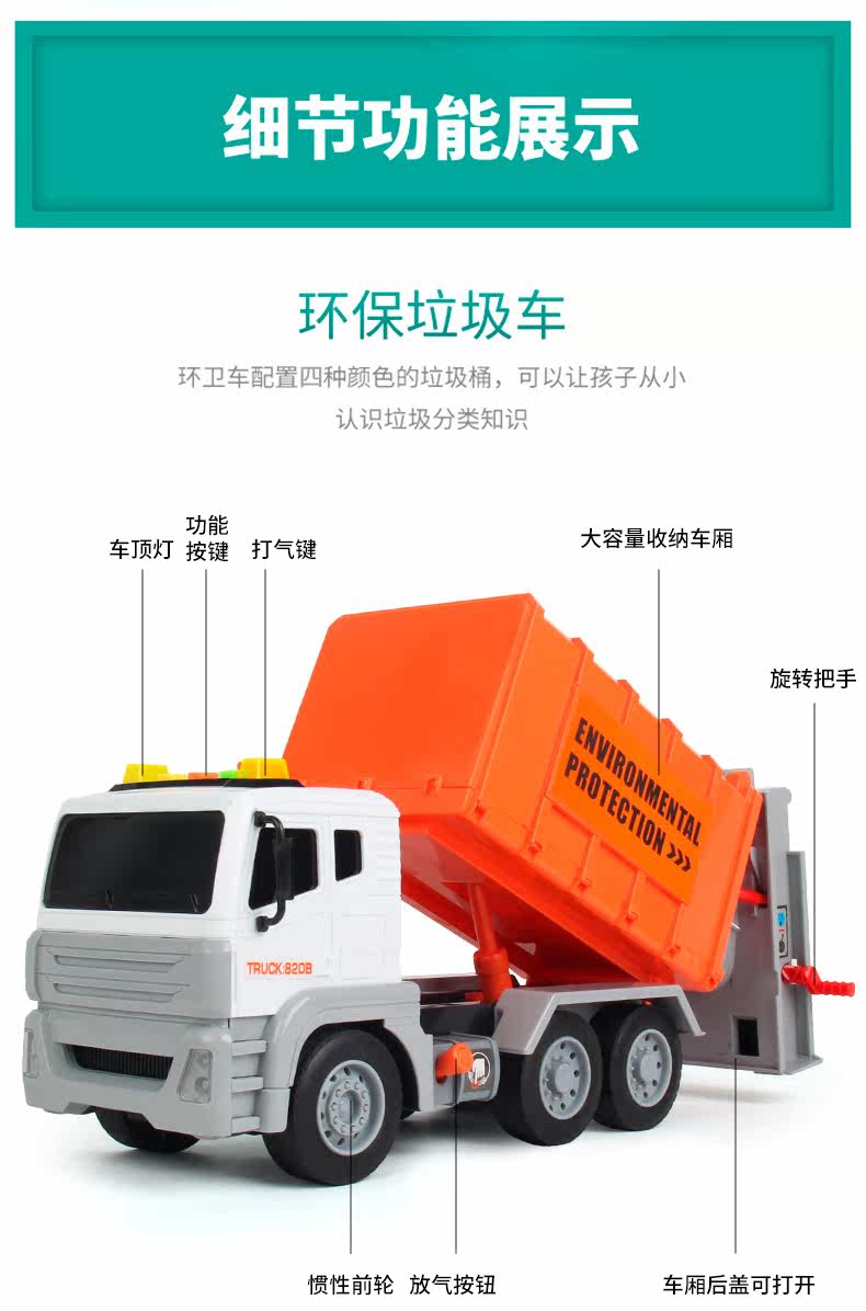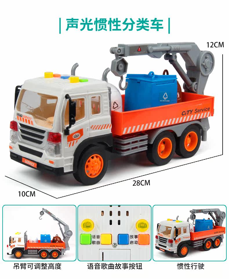 Детское мусорное ведро, большая реалистичная инерционная гигиеническая ударопрочная игрушечная машина для мальчиков, сортировка