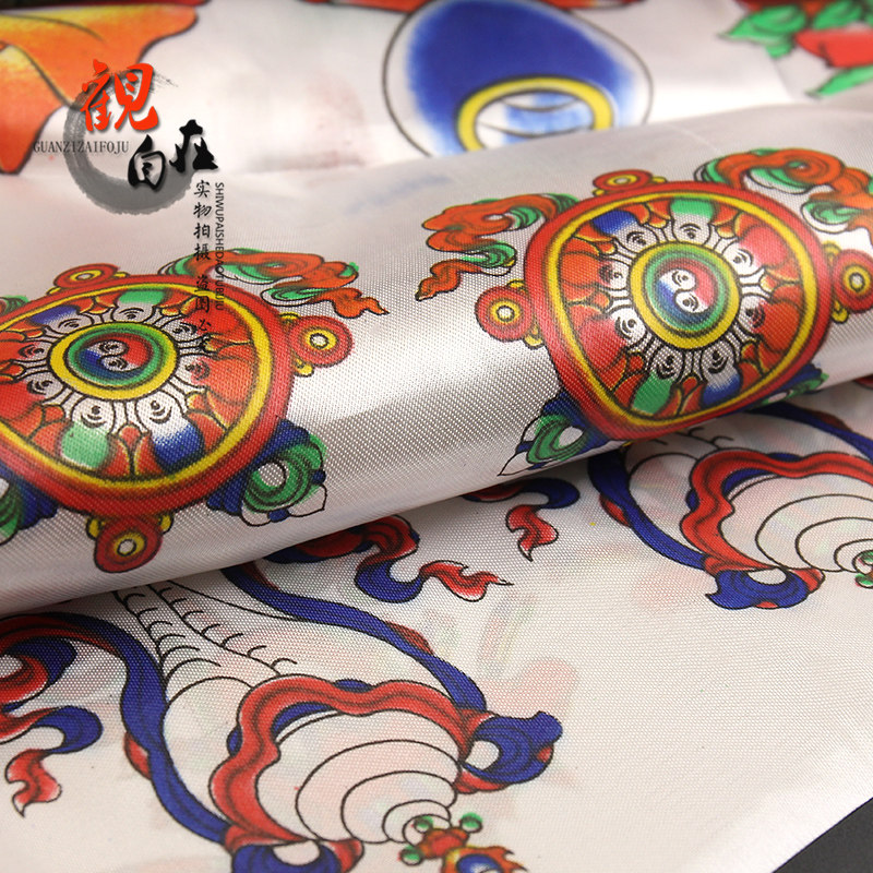 Тибетские восемь благоприятных из печатных изданных хад -тибетских шелковых шелковых изделий из производителя ремесленников, прямые продажи 250см*44см