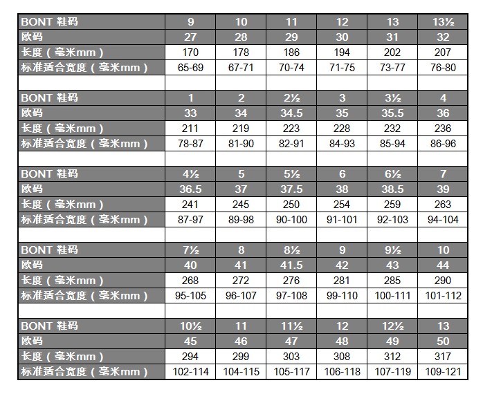 Таблица сравнения кодов обуви: Предложение: фактическая длина стопы+от 4 мм до 8 мм используется в качестве основы для кода выбора