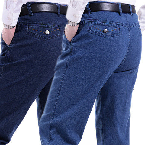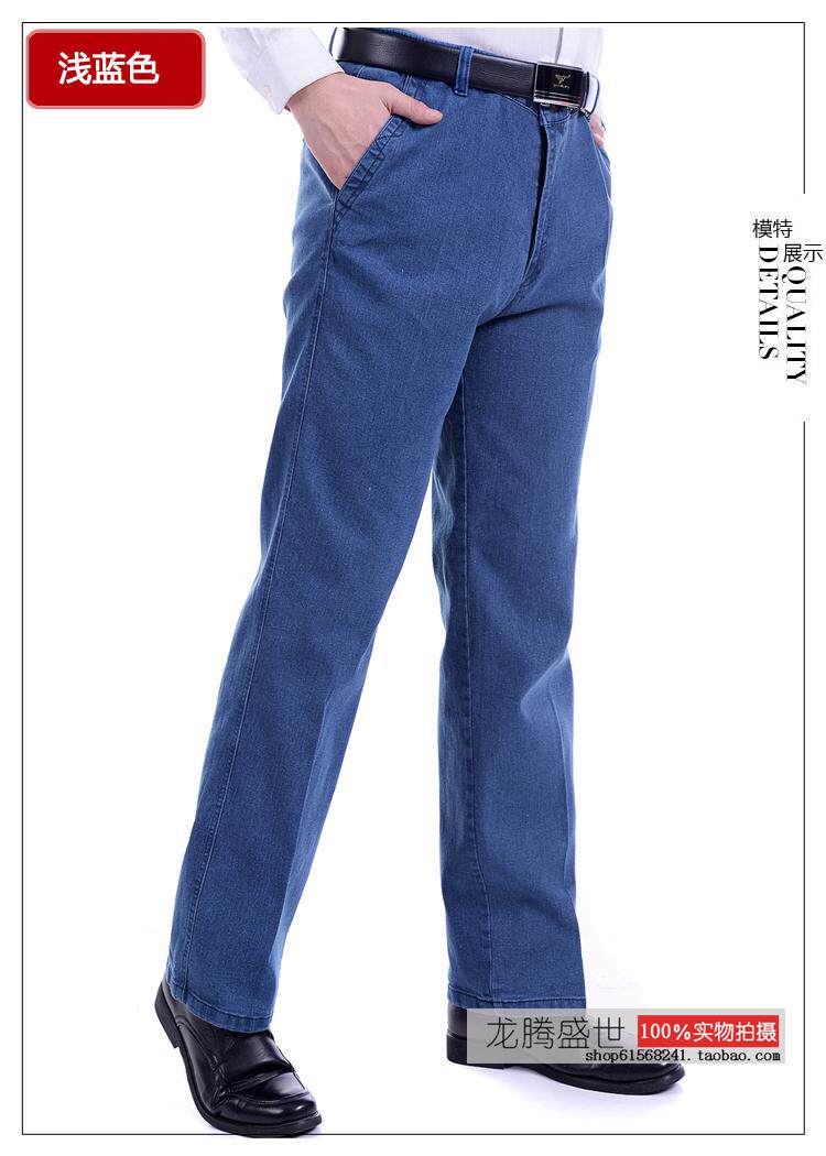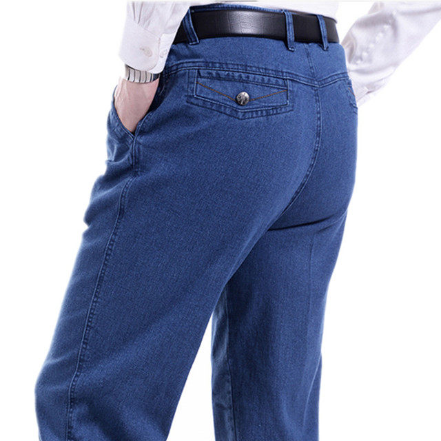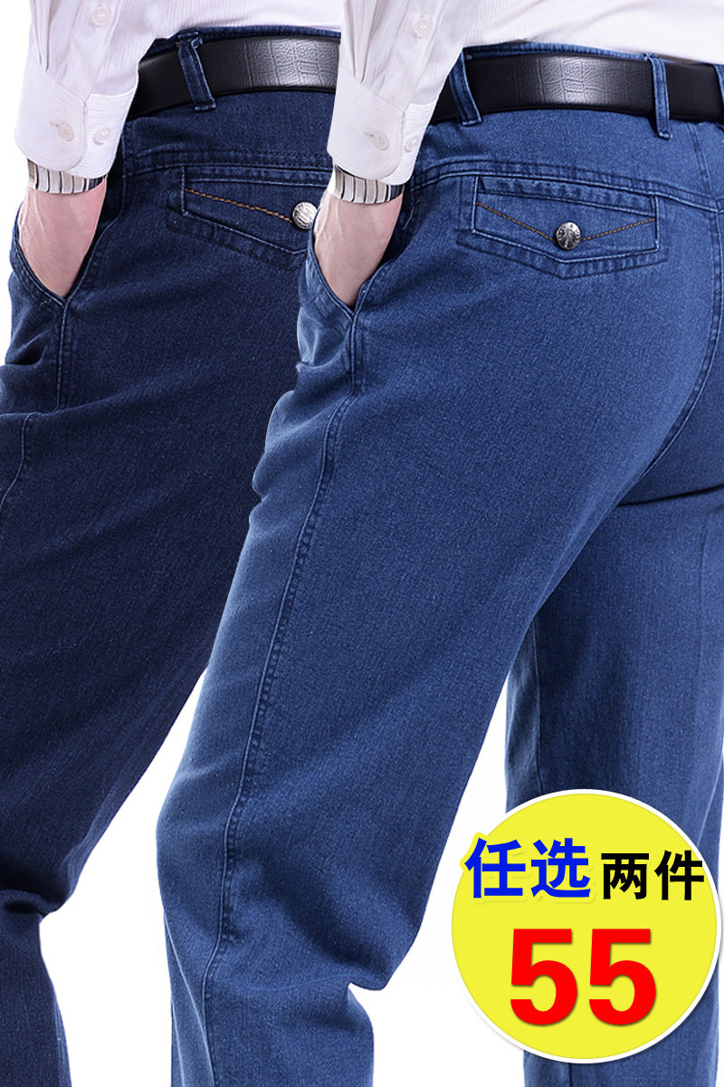 Летние джинсы, эластичные джинсовые штаны, для среднего возраста, высокая талия, свободный прямой крой