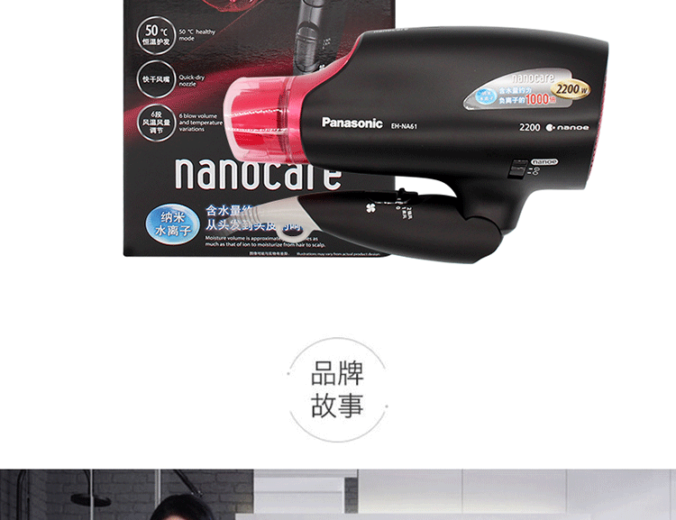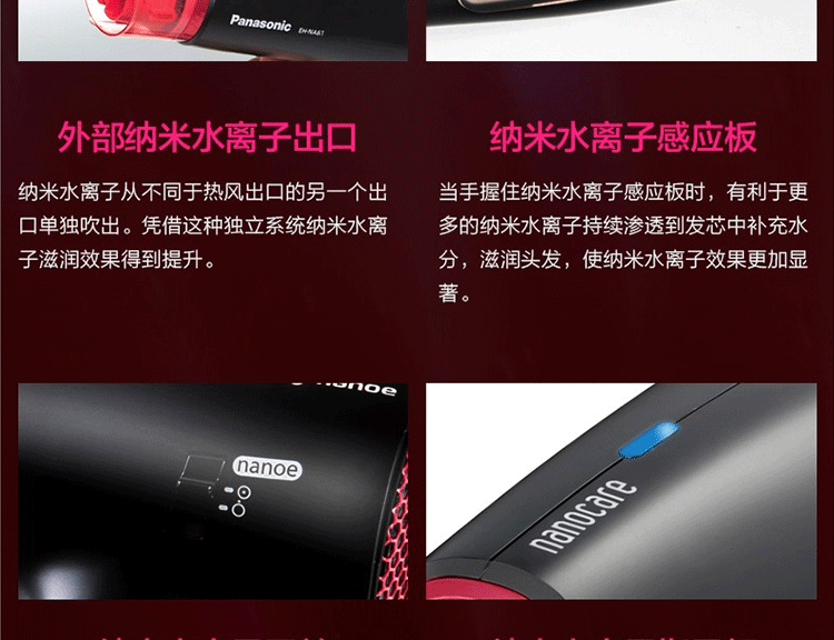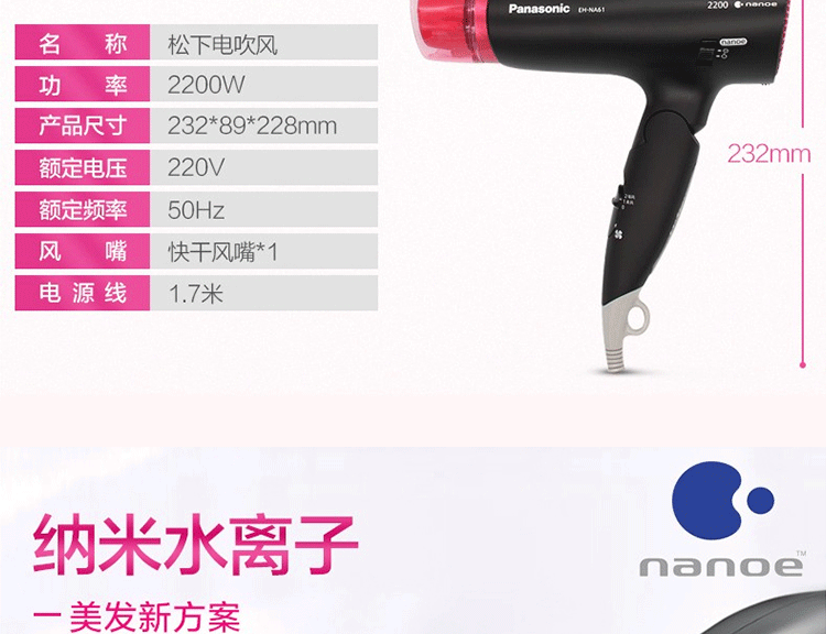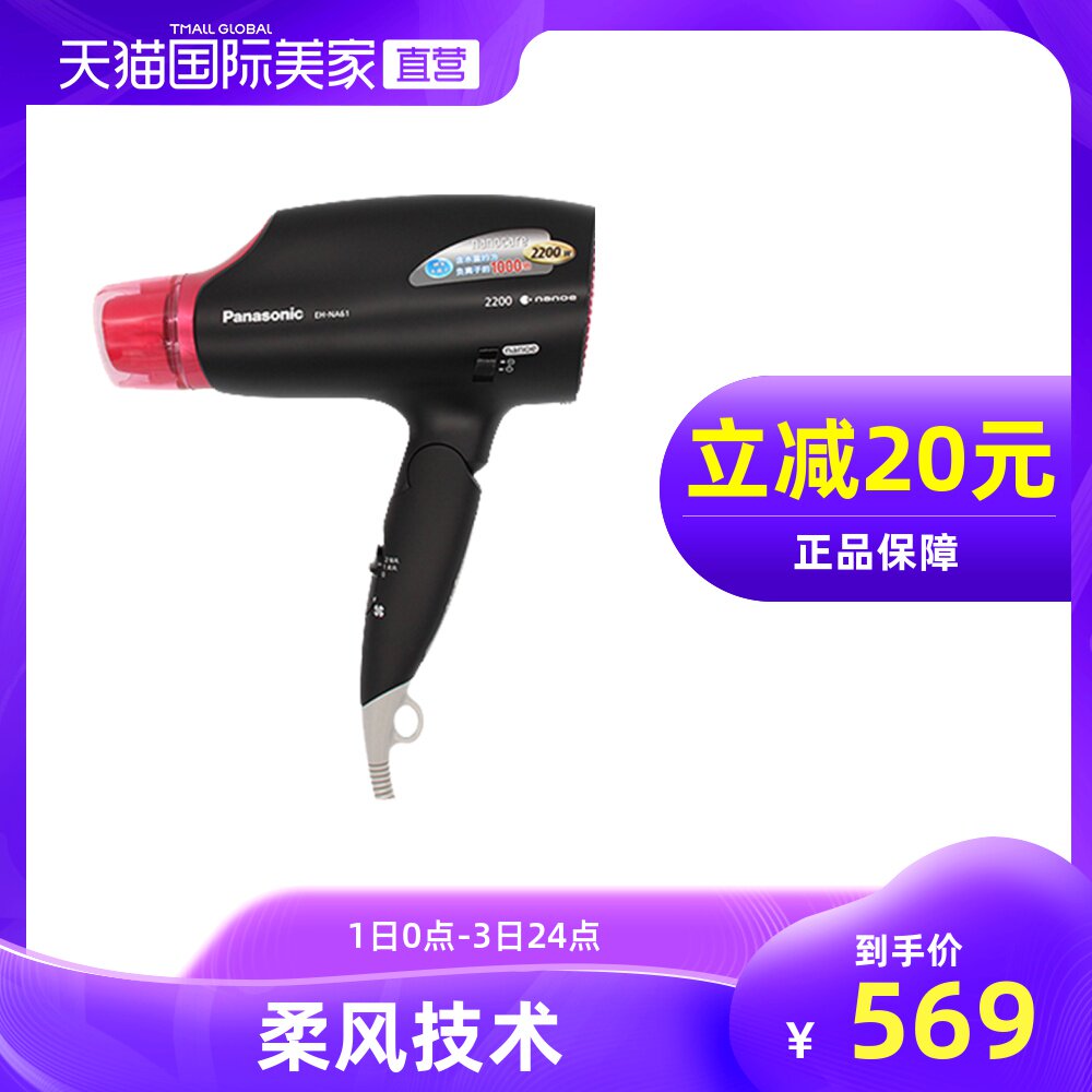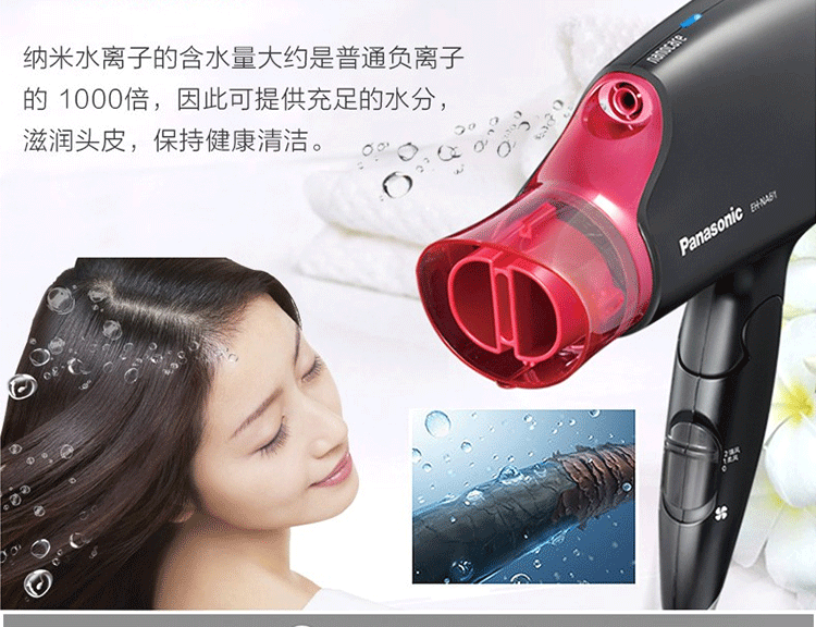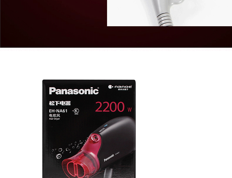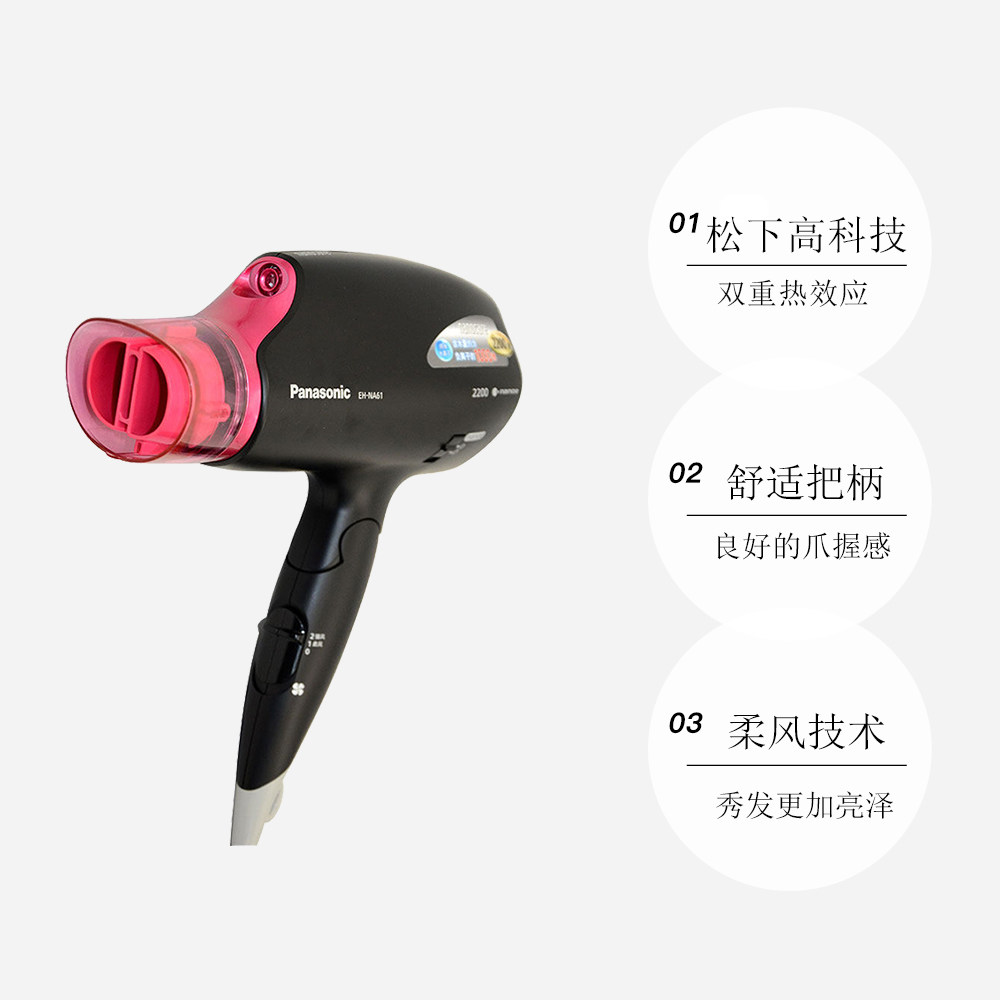 Панасонный фен с феном EH-NA61 Высокоэтажная температура наноода ионов ионов охлаждает волосы с горячим воздухом.