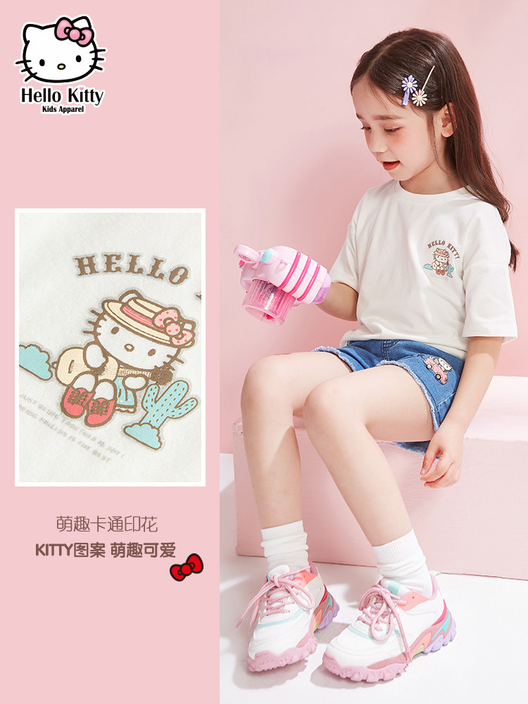 Hello Kitty, мультяшная летняя одежда, детская футболка, детская одежда, сезон 2021, в западном стиле, короткий рукав, подходит для подростков