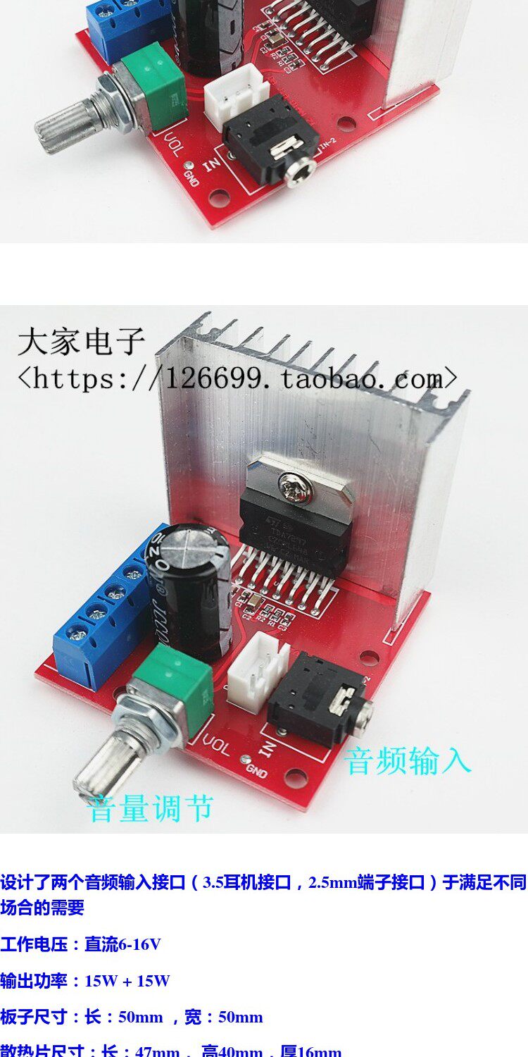 Плата усилителя мощности TDA7297, двухканальная стерео 15 Вт + 15 Вт с радиатором/потенциометром громкости