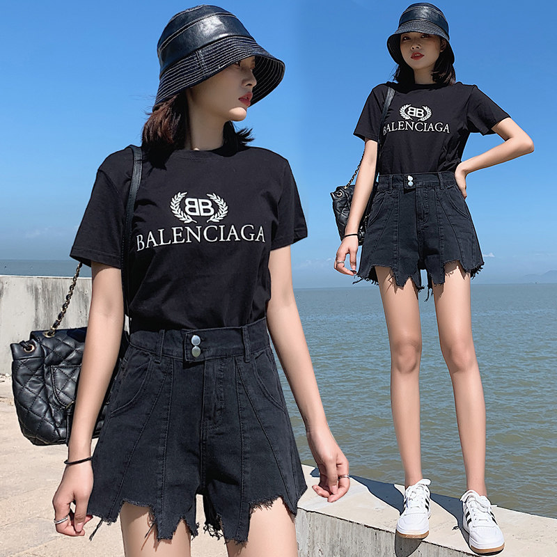 Джинсовая юбка, шорты, приталенные летние штаны, высокая талия, большой размер, подходит для полных девушек, свободный крой, А-силуэт