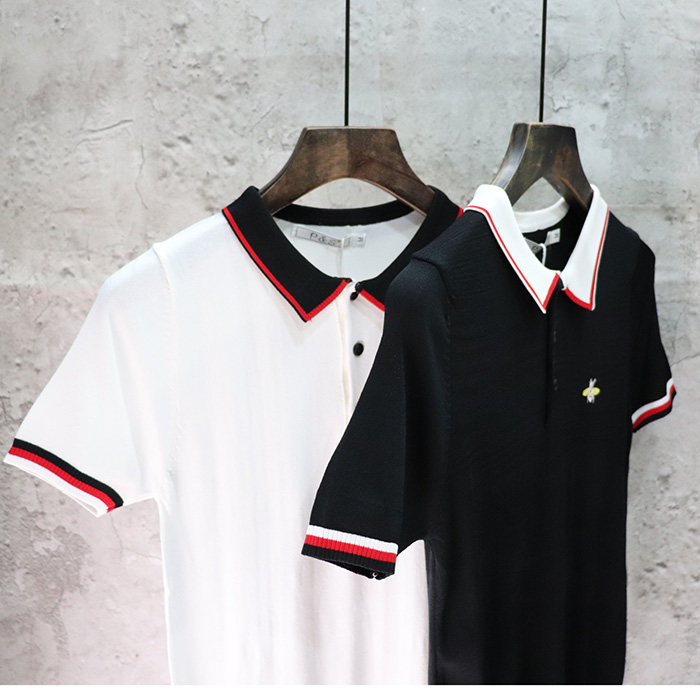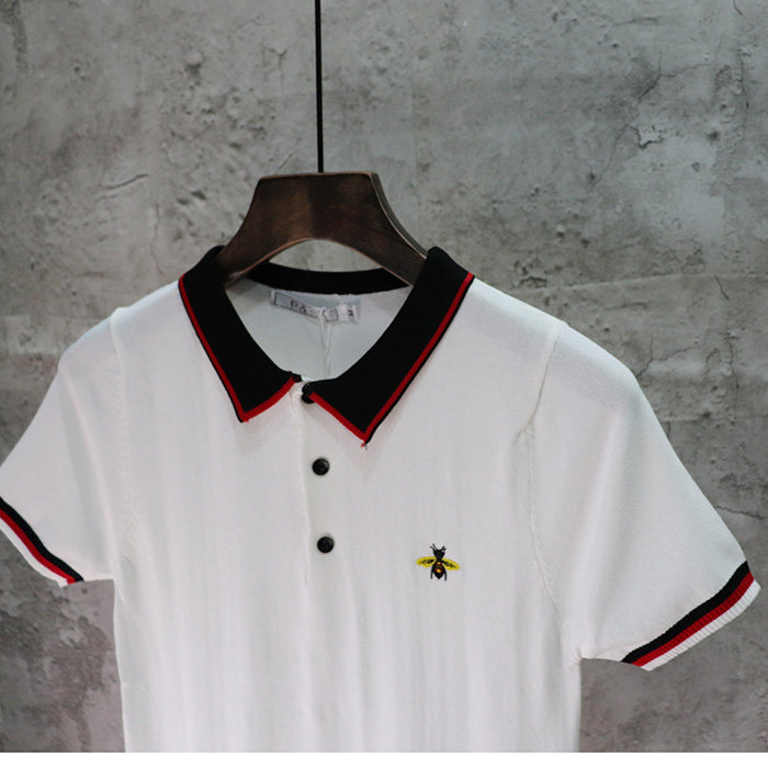 Трикотажная шелковая летняя трендовая футболка polo, 2022, с вышивкой, короткий рукав, в корейском стиле