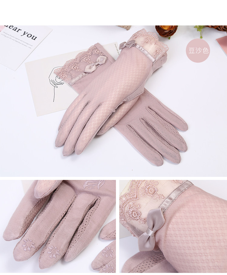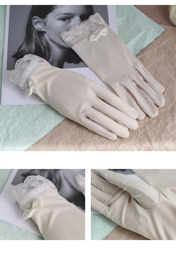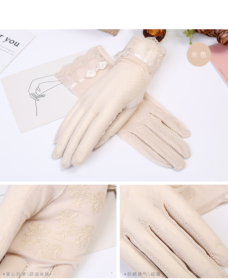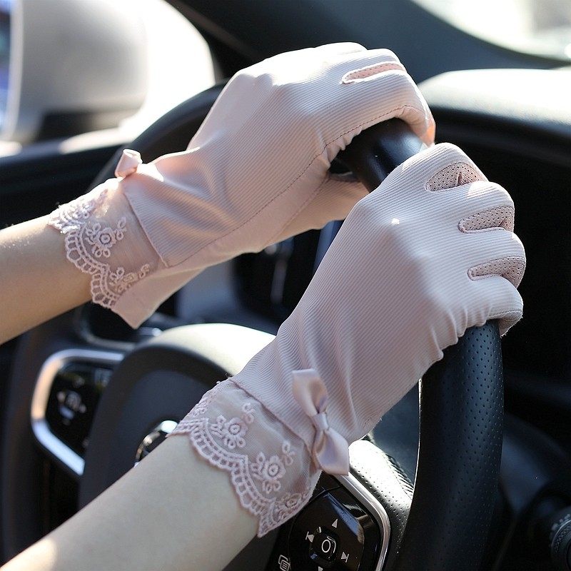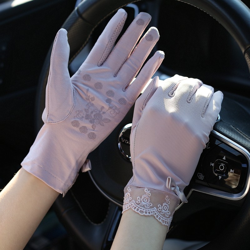 Летние нескользящие перчатки, кружевной осенний ультратонкий тонкий эластичный комплект, защита от солнца, в корейском стиле, по фигуре