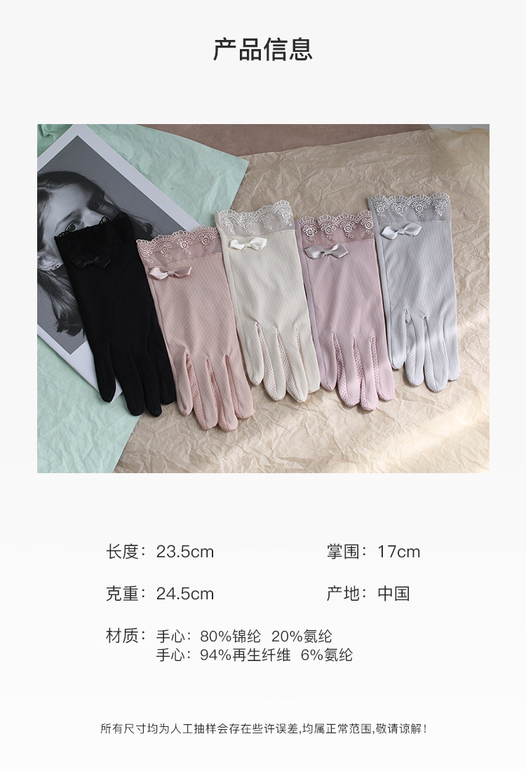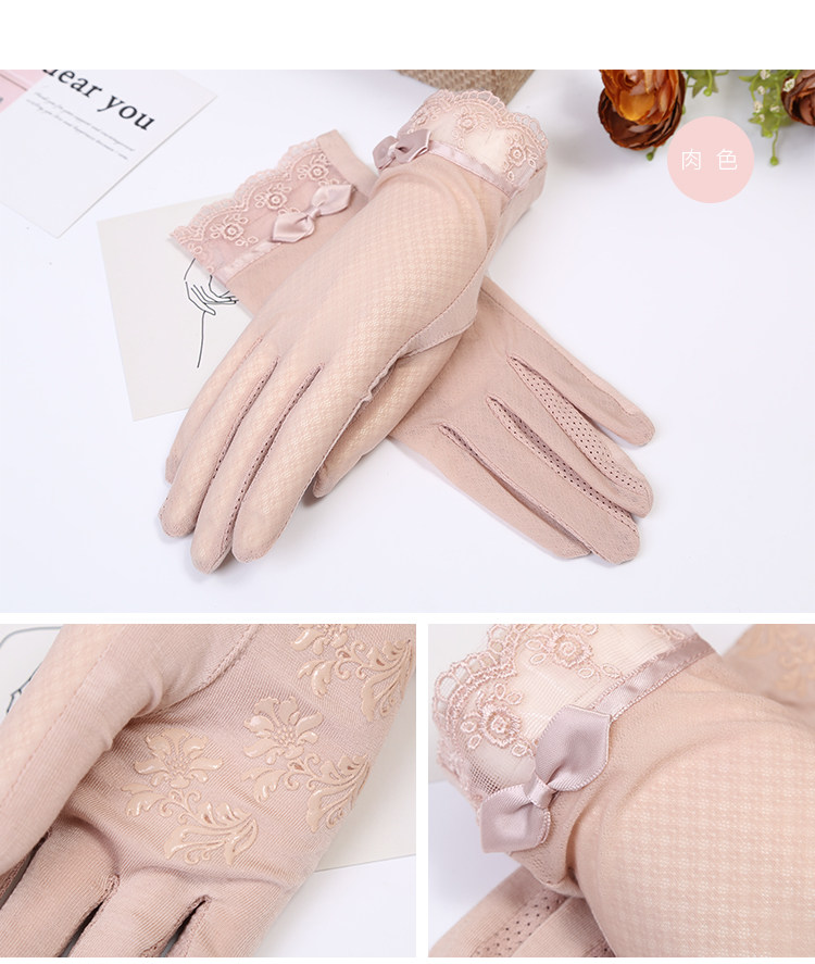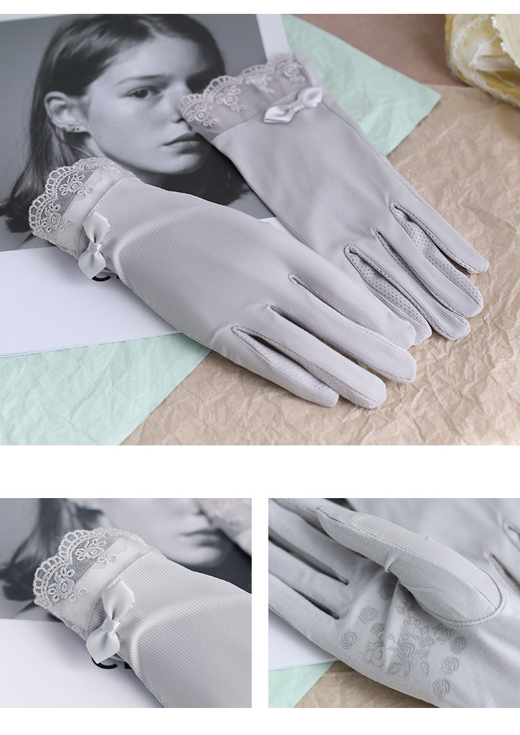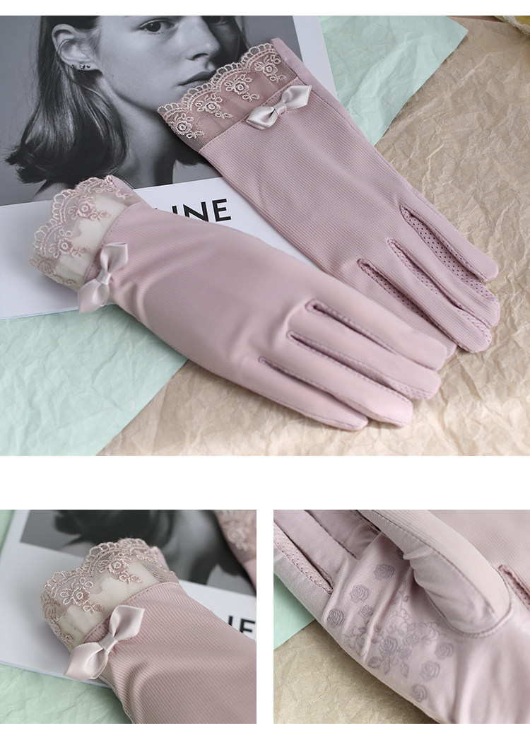 Летние нескользящие перчатки, кружевной осенний ультратонкий тонкий эластичный комплект, защита от солнца, в корейском стиле, по фигуре