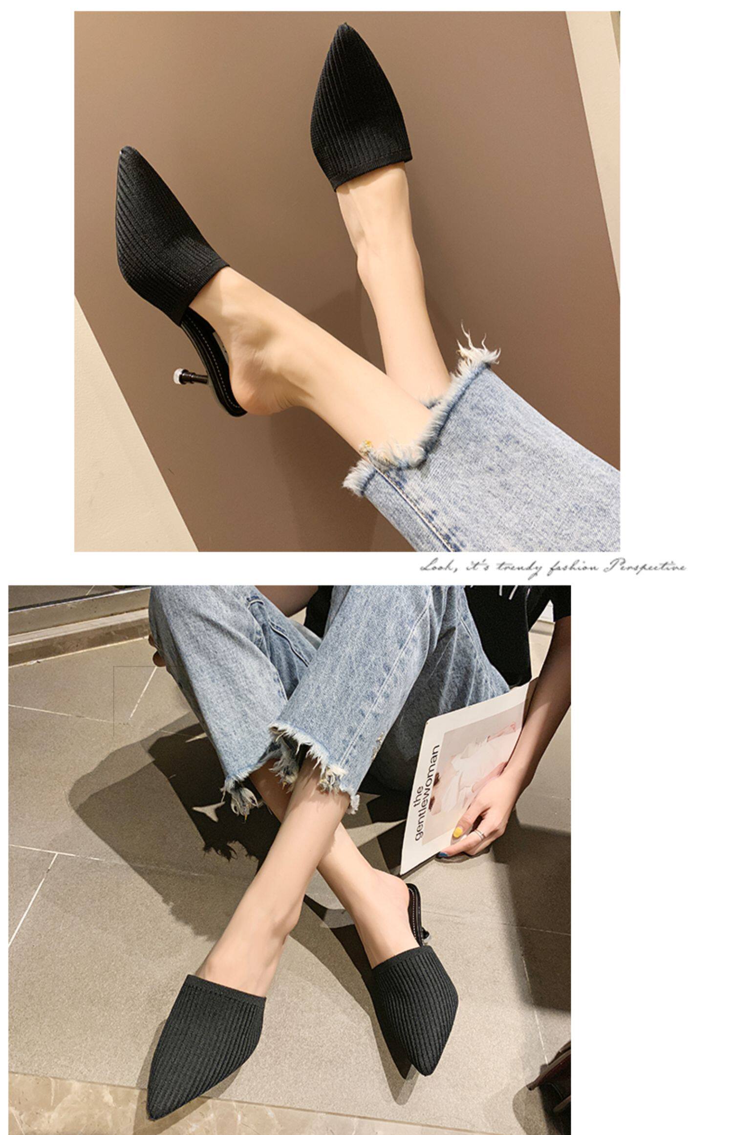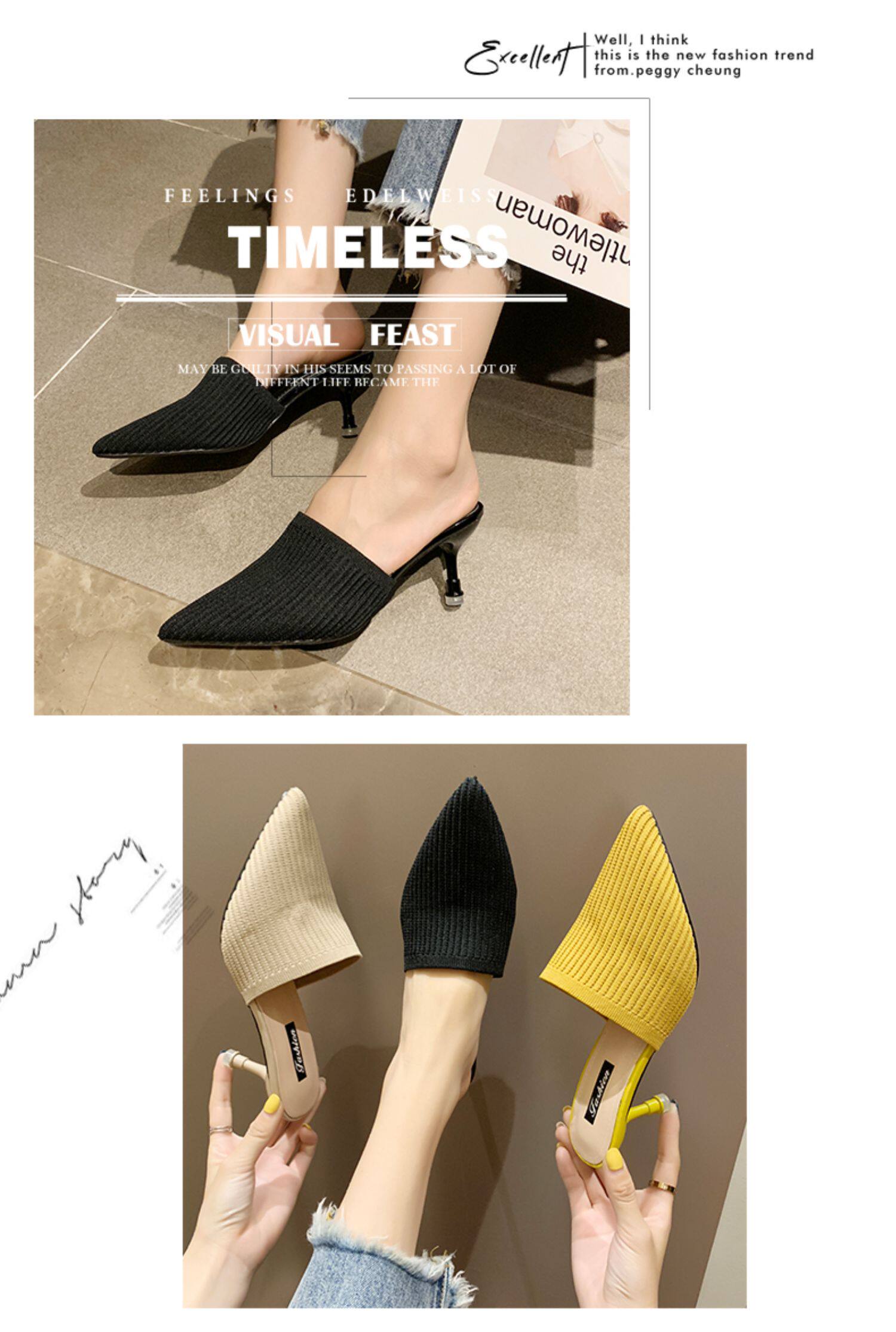 Тапочки, летние модные универсальные туфли на высоком каблуке, коллекция 2021