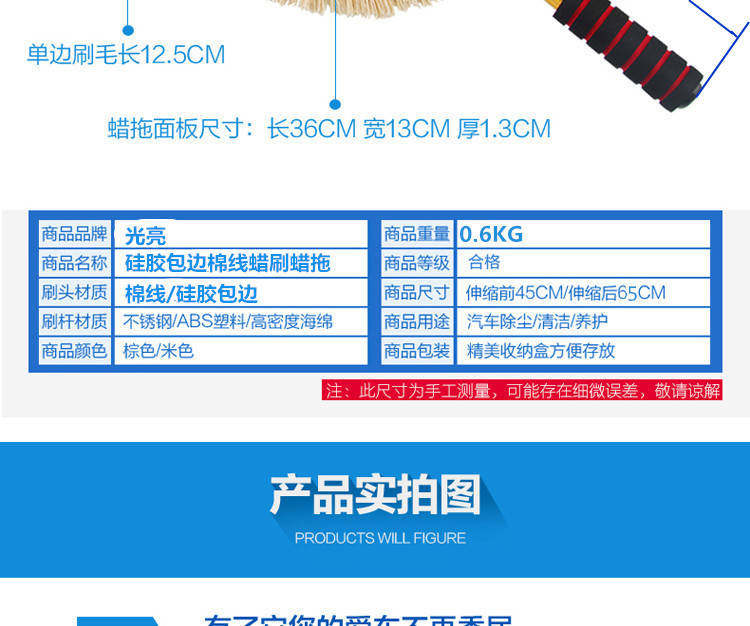 1. Мягкий силикон вокруг головки щетки, чтобы не поцарапать автомобильную краску.2. Материал чистка хлопчатобумажной проволоки, а не статического электричества, не причиняя вреда автомобильной краске (рекомендуется встряхнуть несколько раз, и кисть неизбежно будет казаться плавающими волосами в производстве).3. Сплав сплавов может быть масштабируемым, а автомобиль может быть уничтожен в любом месте.4. Восковая щетка выходит на заводе с пропитанным воском высокого давления, и ее можно использовать при получении.