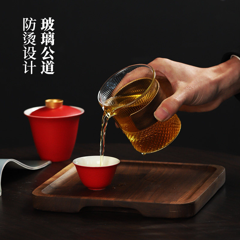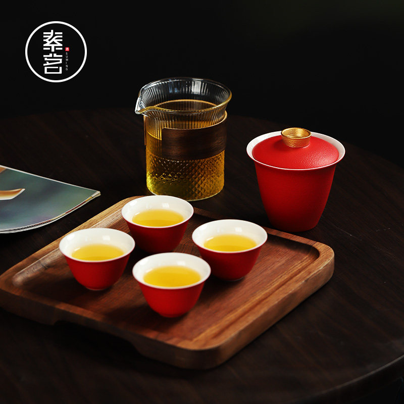 Красный стеклянный портативный чайный сервиз для путешествий, комплект, делается под заказ, с печатью вашего логотипа, подарок на день рождения