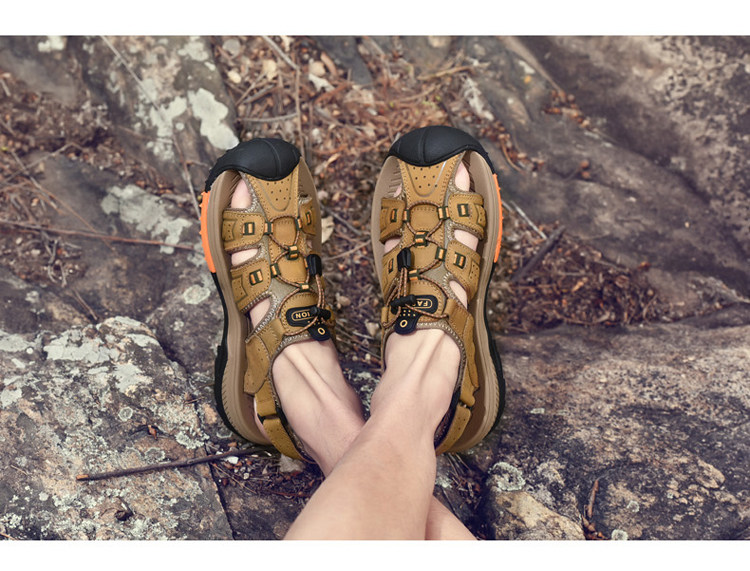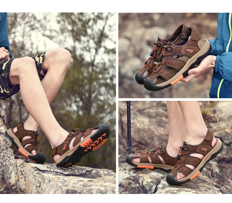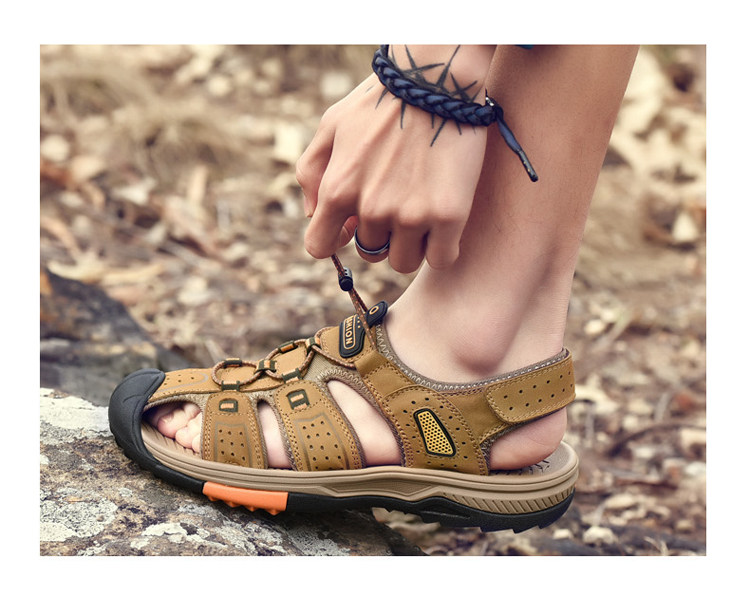 Босоножки, летняя кожаная спортивная пляжная обувь, из натуральной кожи, воловья кожа