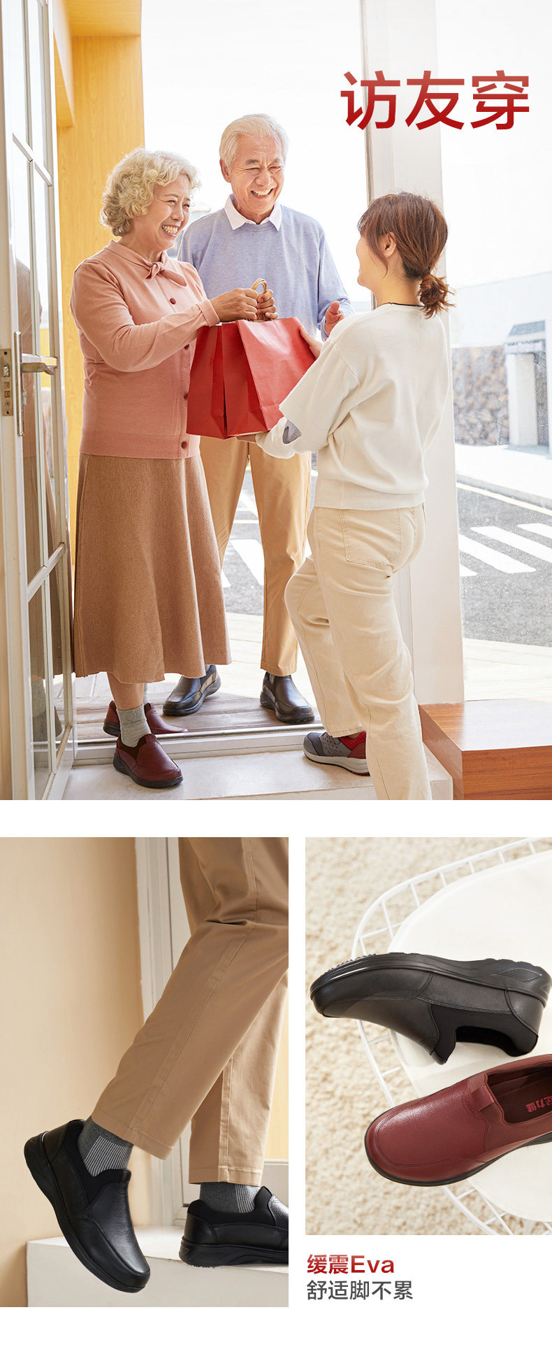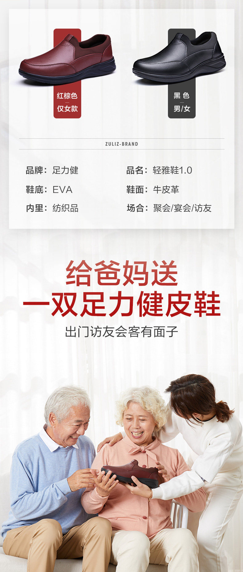 足力健 Осенняя комфортная спортивная обувь для ходьбы, для среднего возраста, мягкая подошва