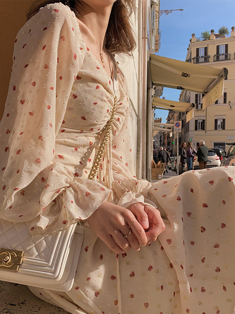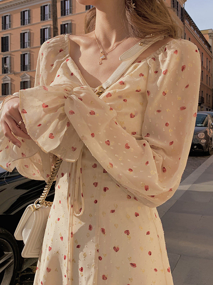 Осенняя женская длинная юбка, платье, в цветочек