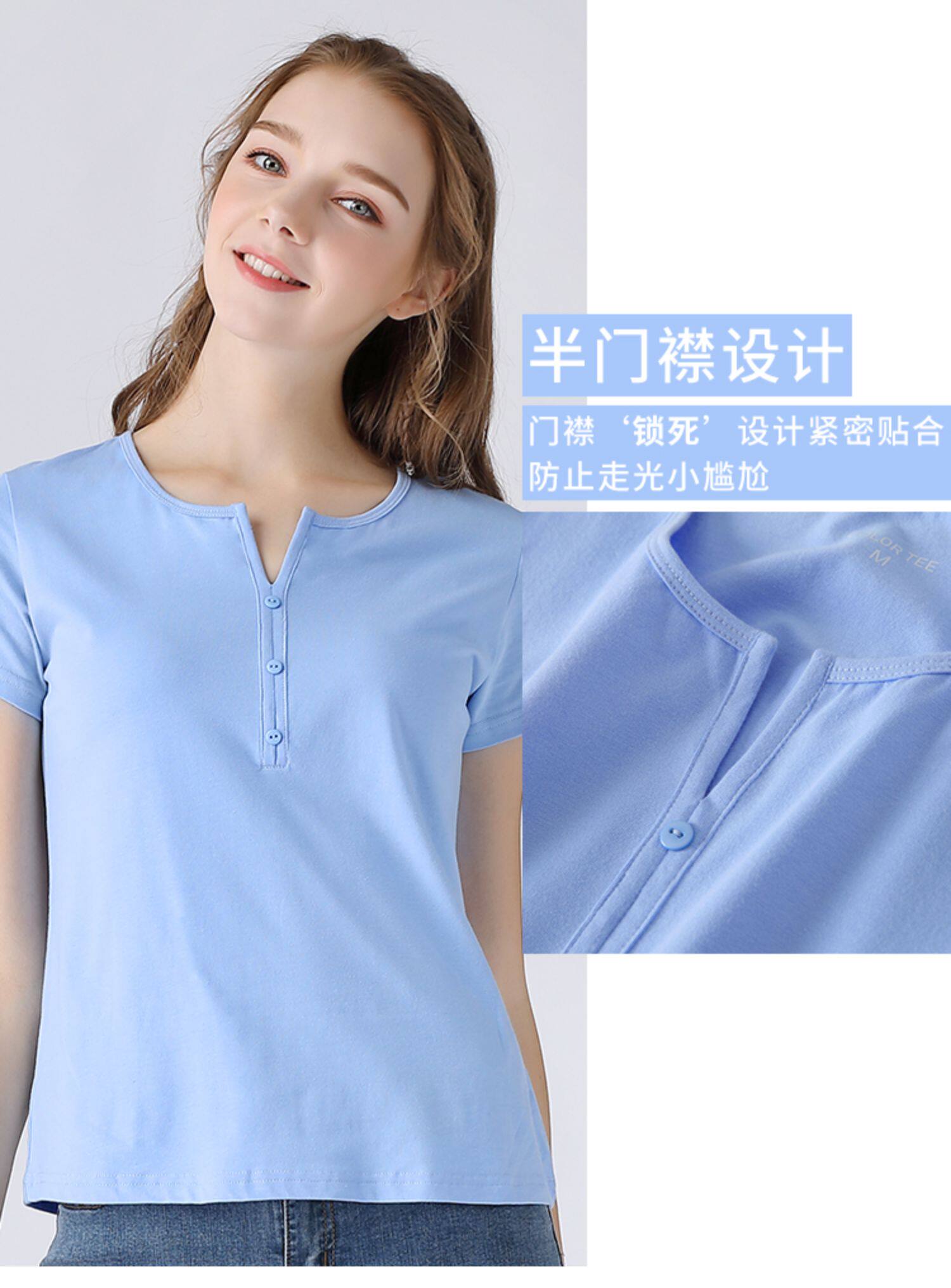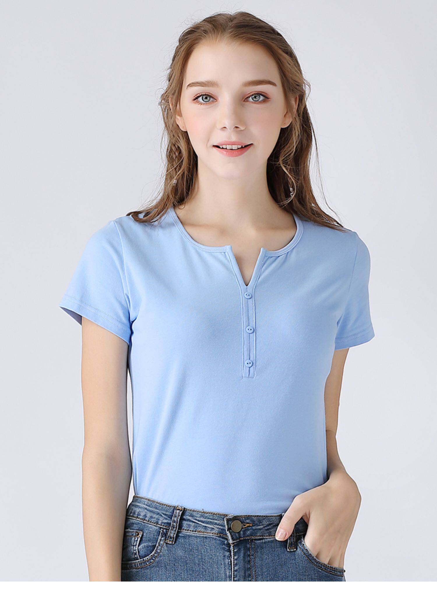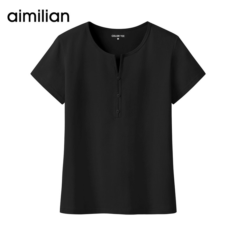 艾米恋 Летняя розовая небольшая дизайнерская базовая приятная телу черная хлопковая футболка, V-образный вырез
