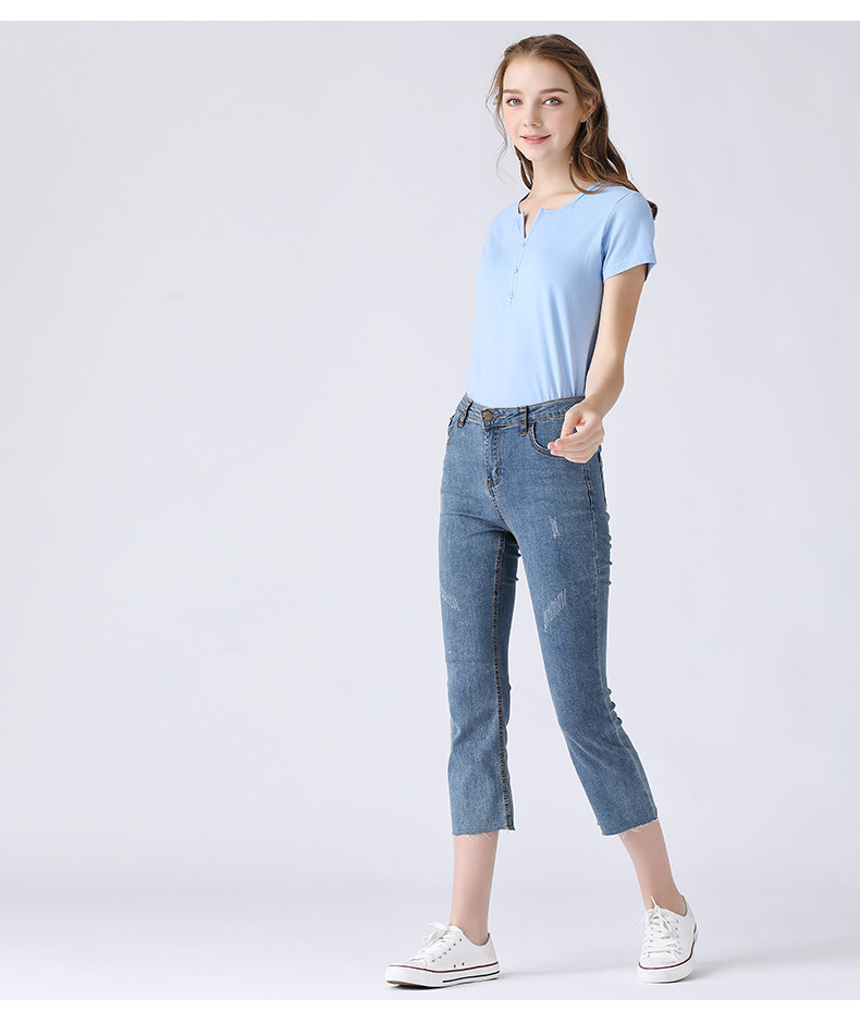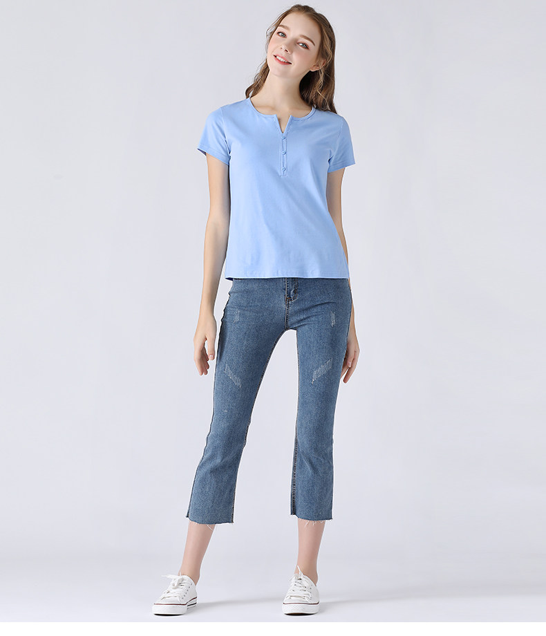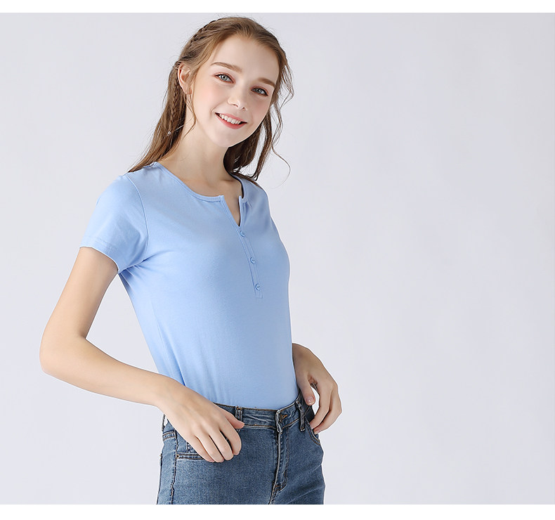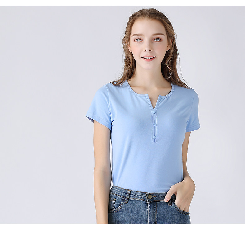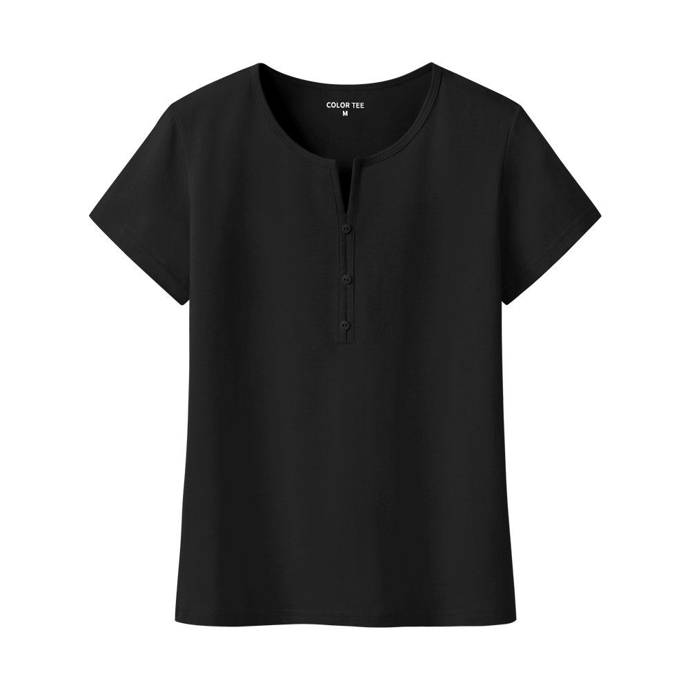 艾米恋 Летняя розовая небольшая дизайнерская базовая приятная телу черная хлопковая футболка, V-образный вырез