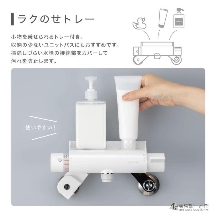 Новая термостатическая насадка для душа 2019 года производства японского смесителя Sanei оснащена полкой из смолы для удобства использования.
