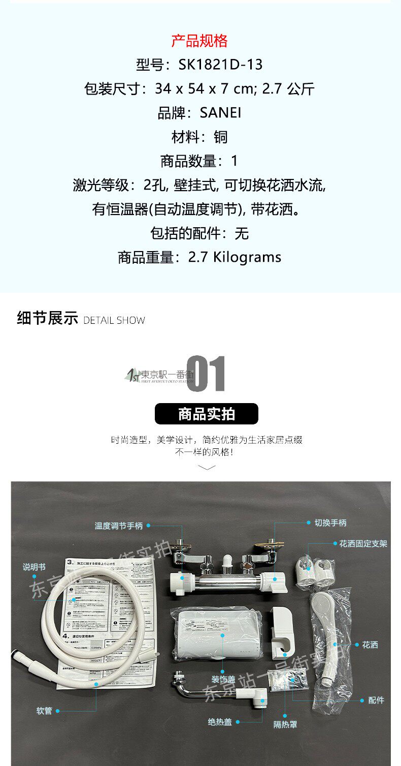 Сделано в Японии, импортировано в оригинальной упаковке, основной корпус изготовлен из чистой меди с хромированием, выход воды постоянной температуры. Температурная стабильная Красивая внешность Супер высокое качество,Душевая насадка представляет собой душевую насадку с наддувом, и расход воды очень достаточный, что удивительно.
