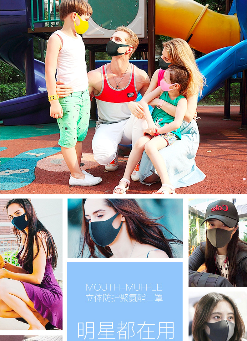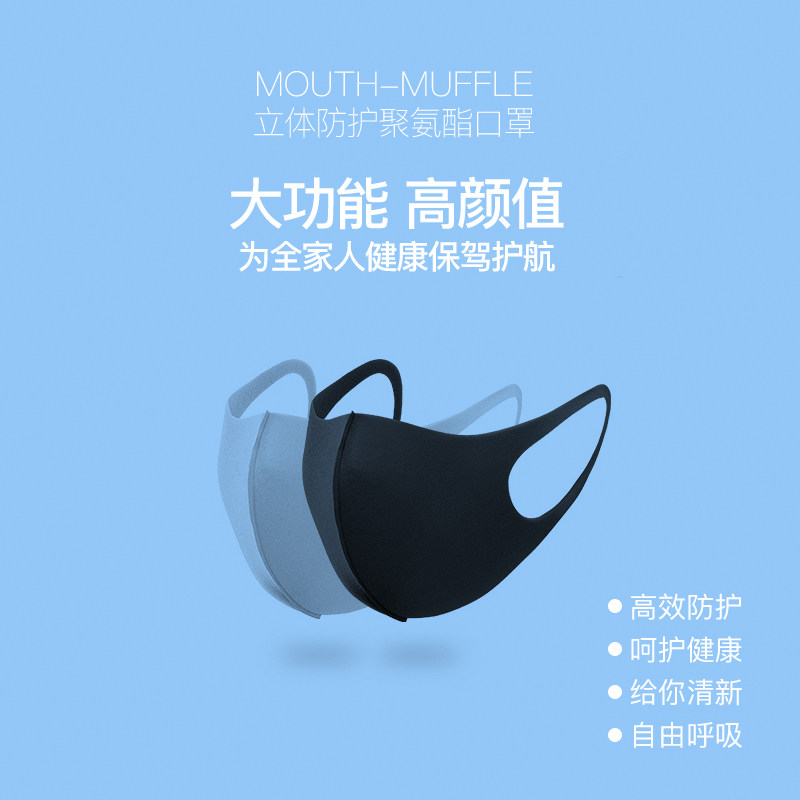 Зимняя дышащая модная полиуретановая поролоновая черная японская медицинская маска, популярно в интернете