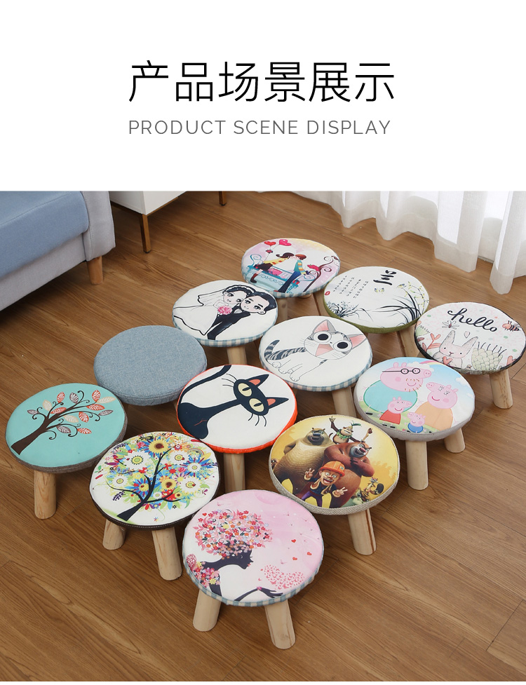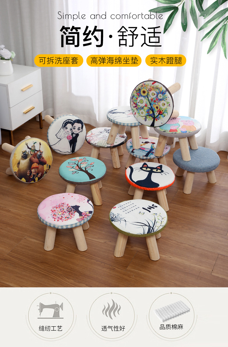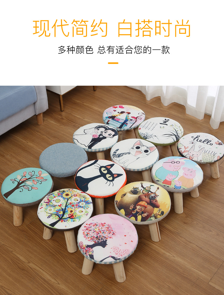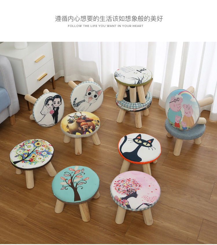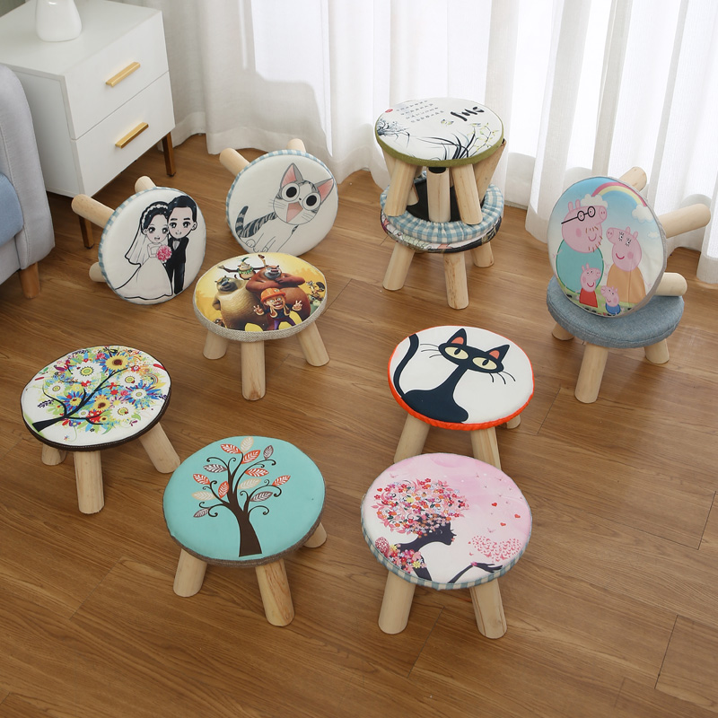 Маленький стул с твердым древесиной, кресло для обувного табурета круглый стул, диван -стул короткий стул, творческий маленький грибной табурет