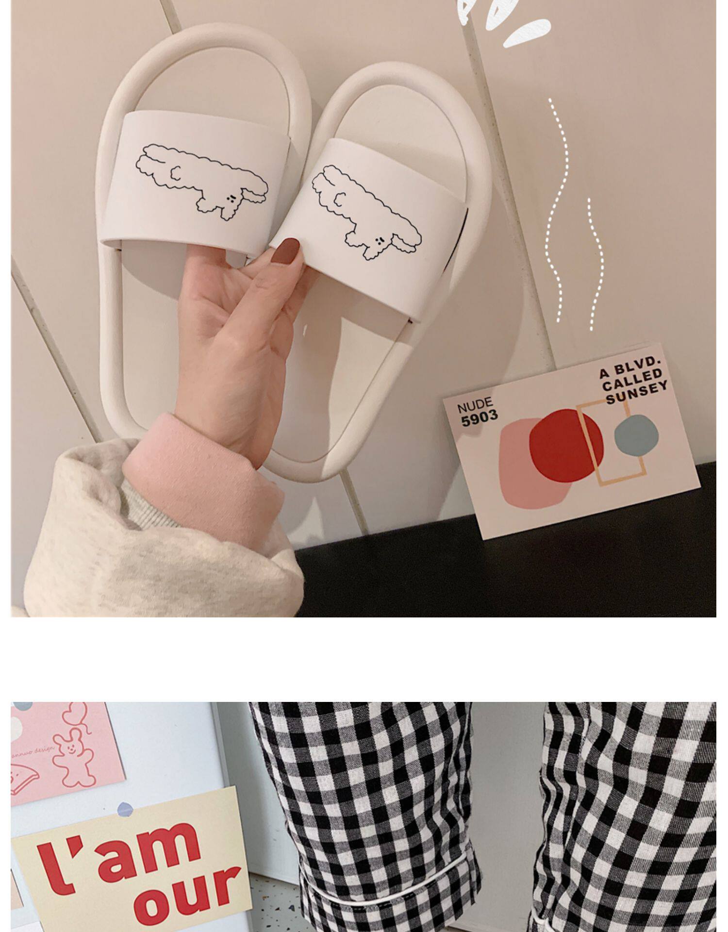 细细条 Мультяшные тапочки для ванны, 2020, в корейском стиле