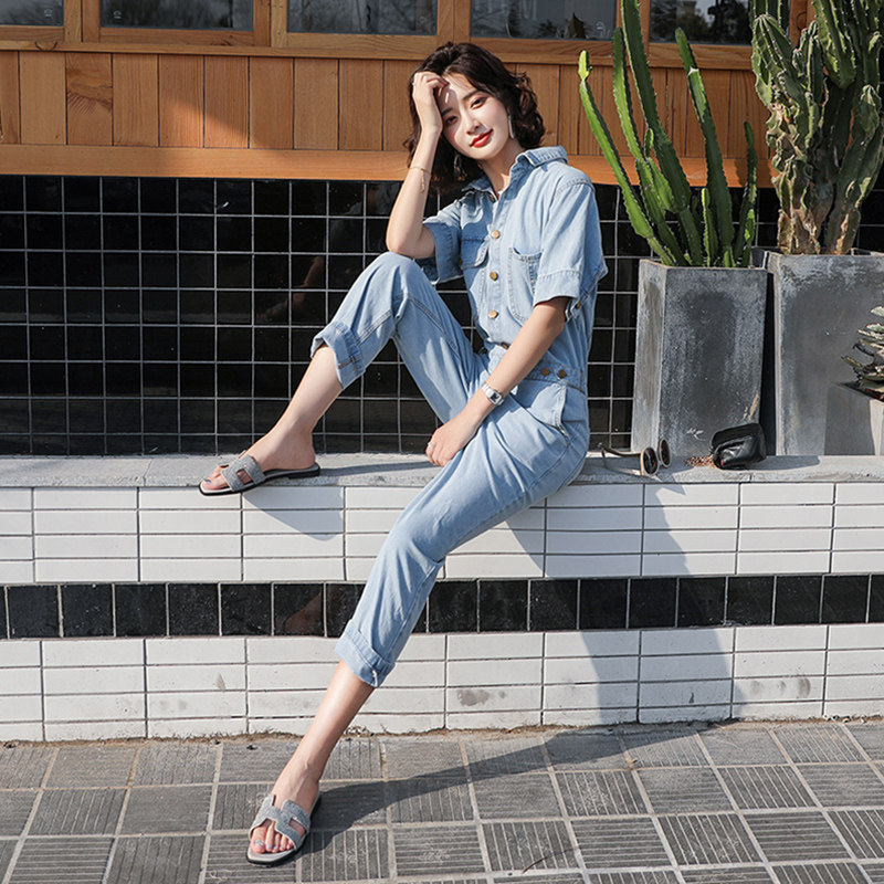 Комбинезон, штаны, летний тонкий комплект для отдыха, по фигуре, в корейском стиле
