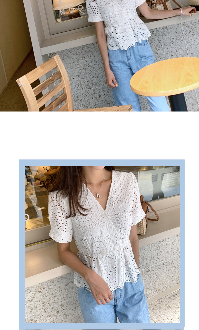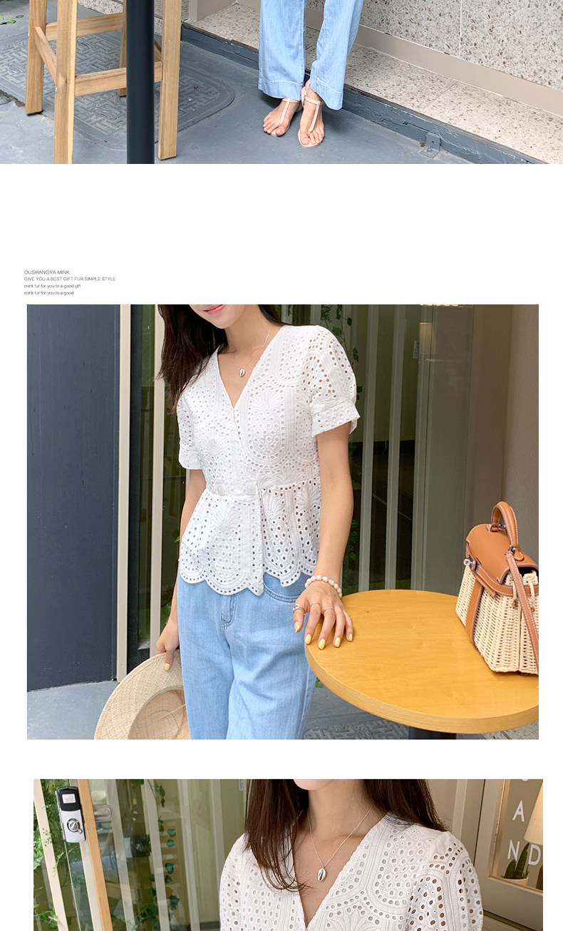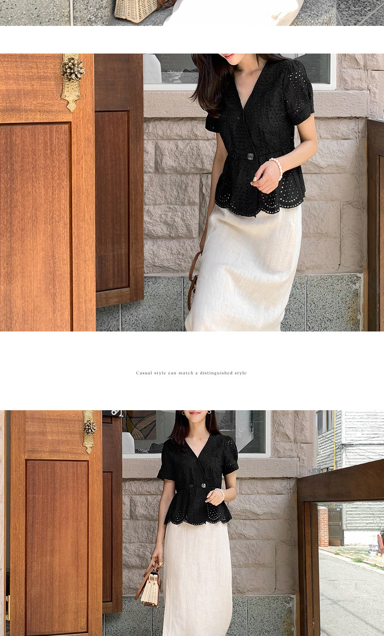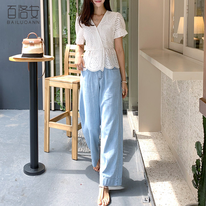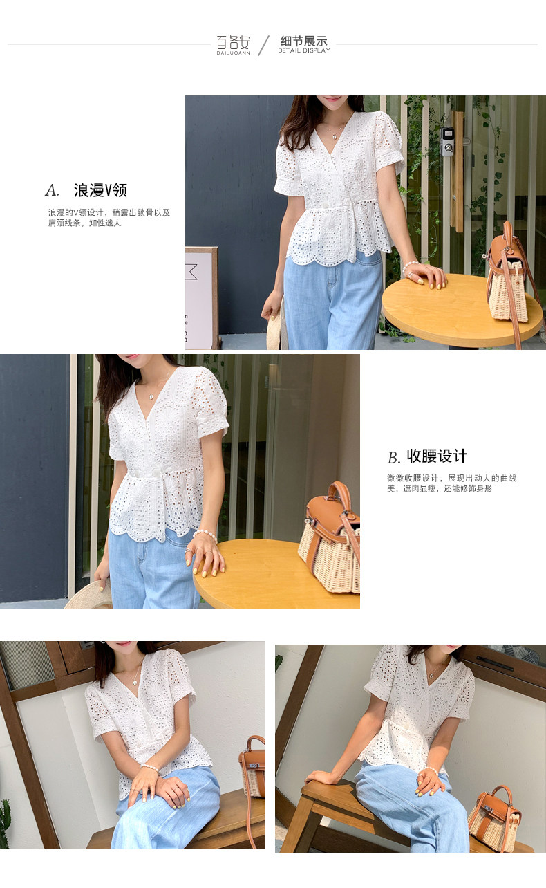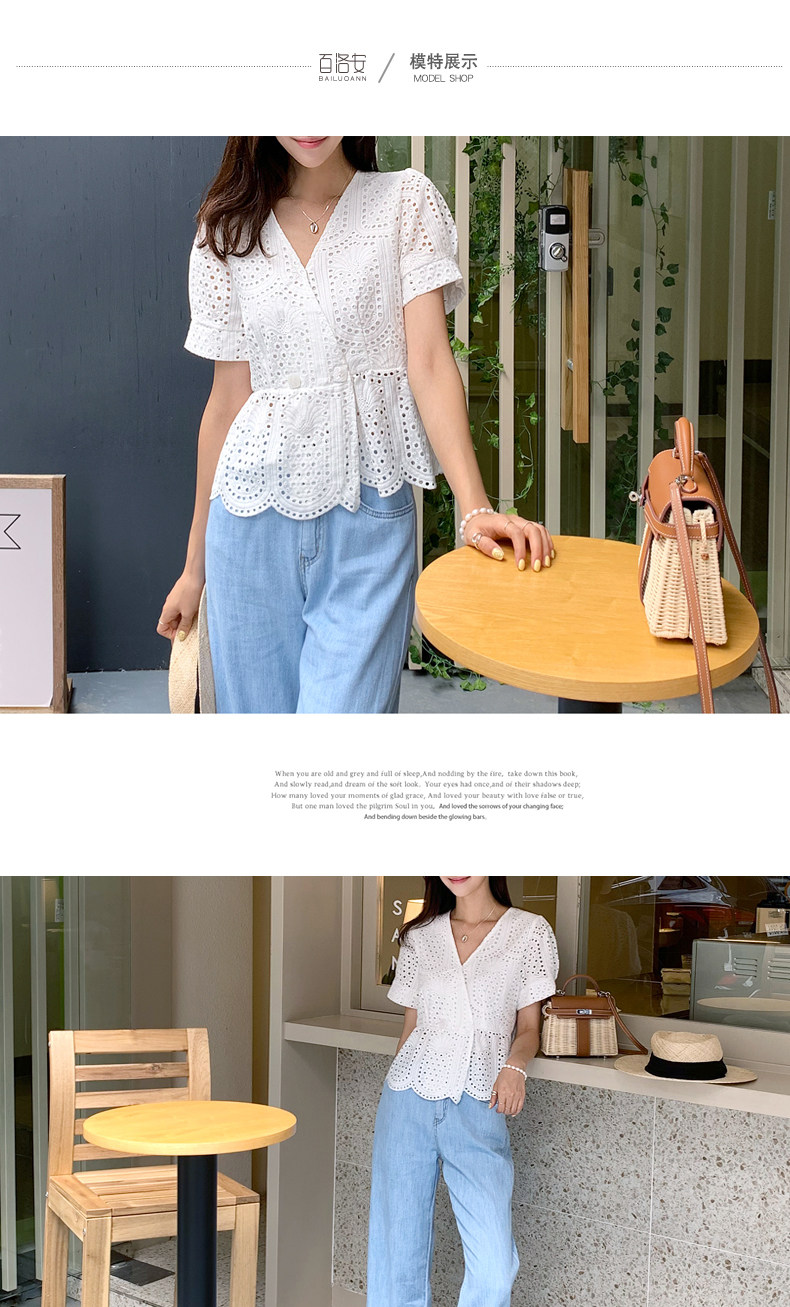 百洛安 Летняя модная рубашка, в корейском стиле, короткий рукав, V-образный вырез