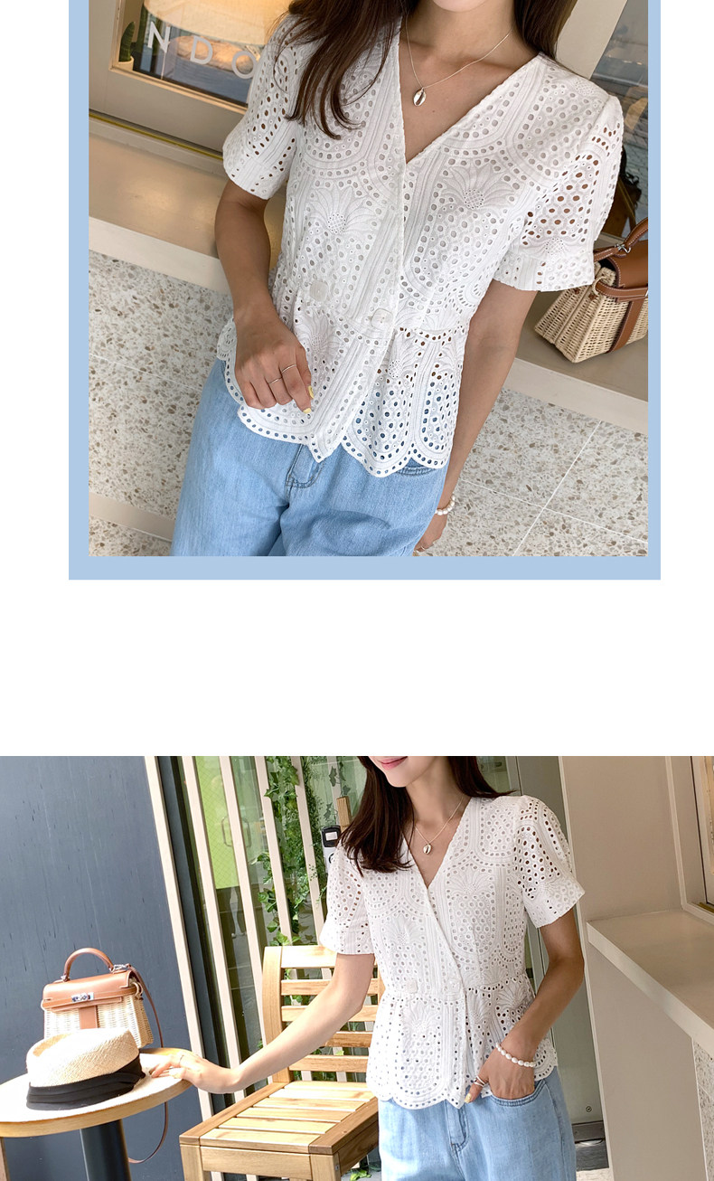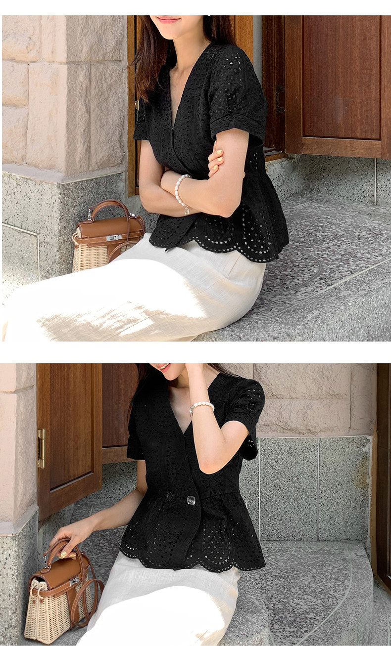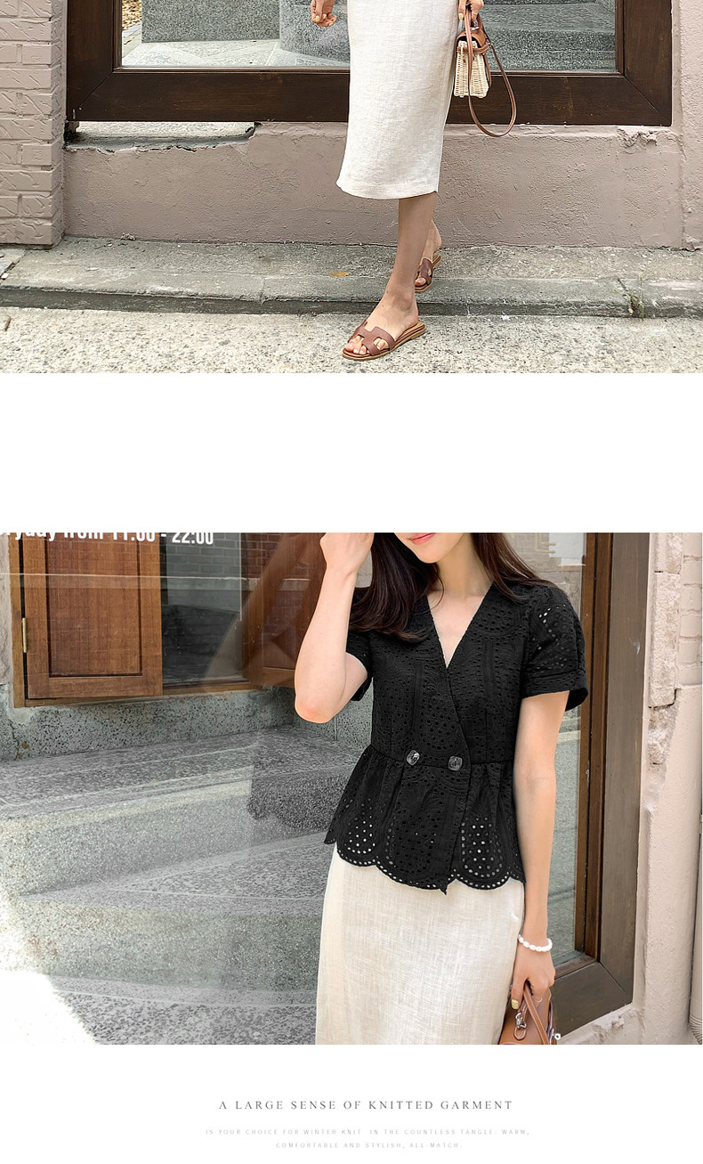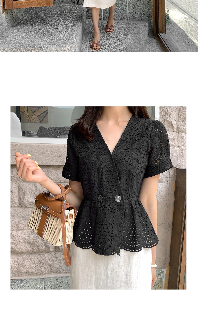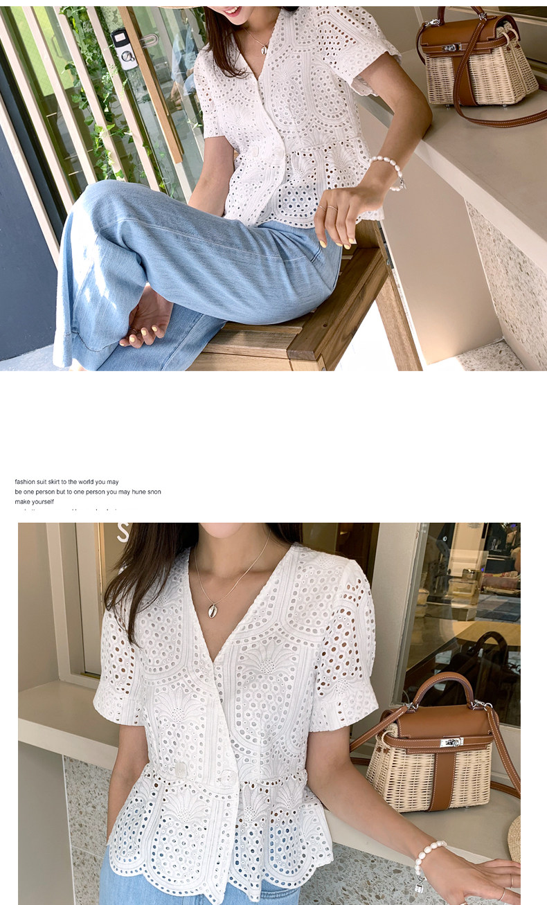 百洛安 Летняя модная рубашка, в корейском стиле, короткий рукав, V-образный вырез