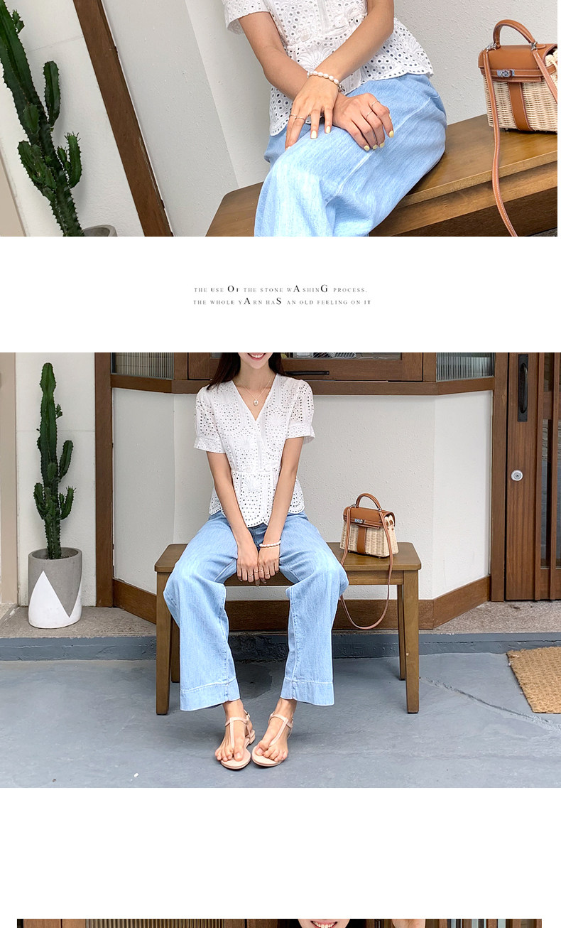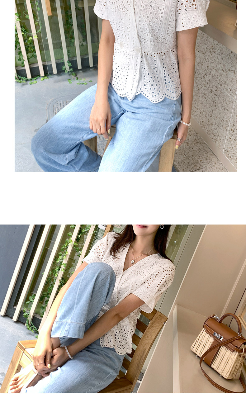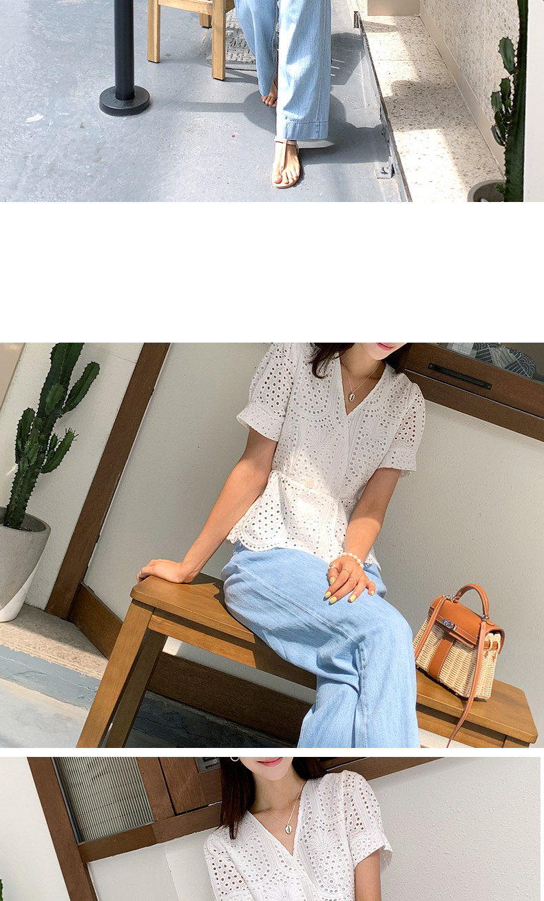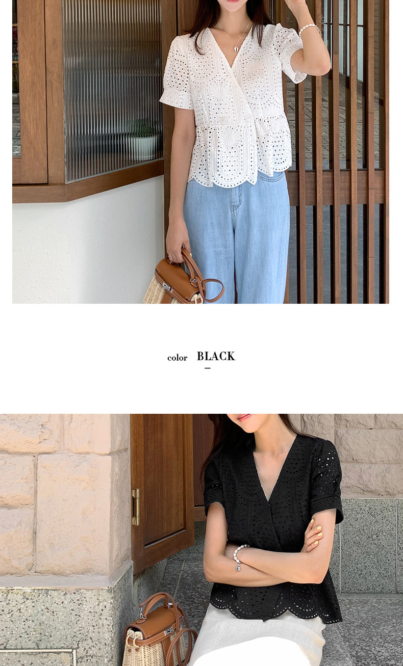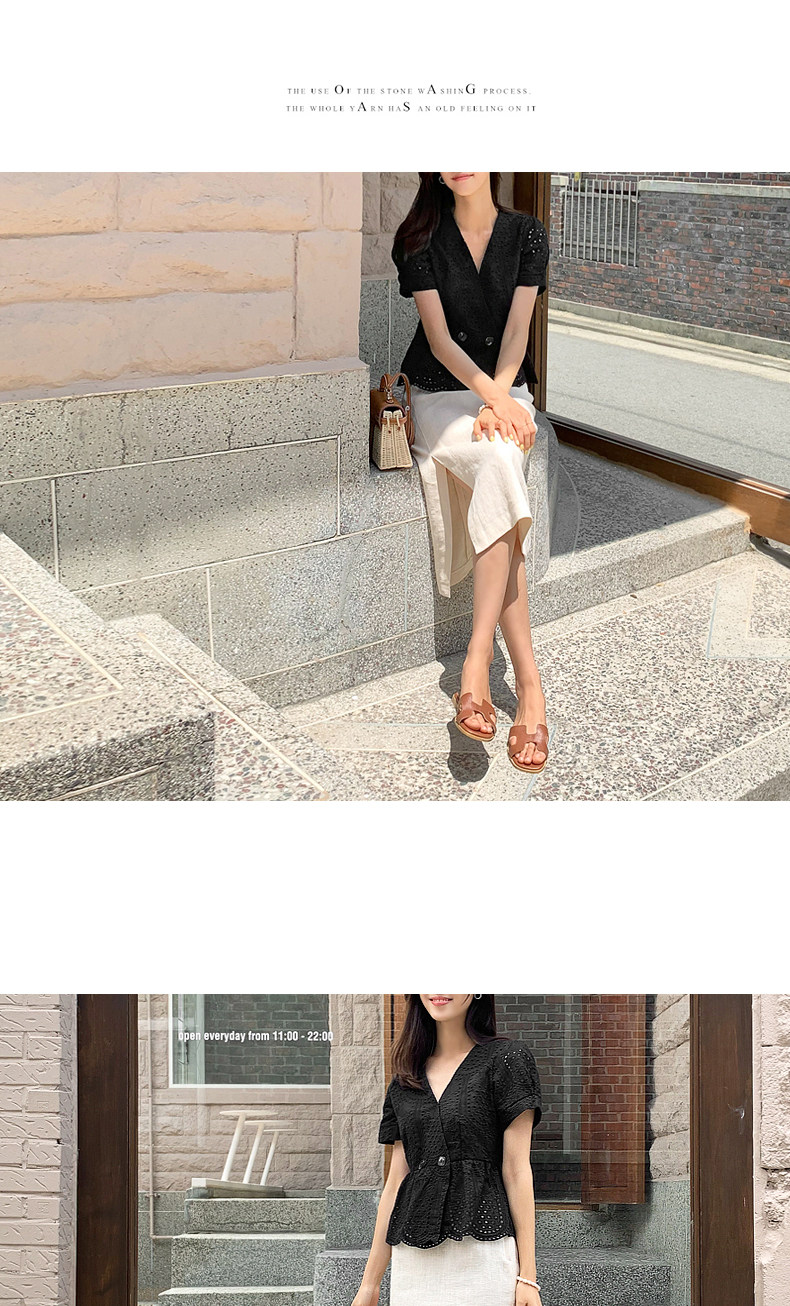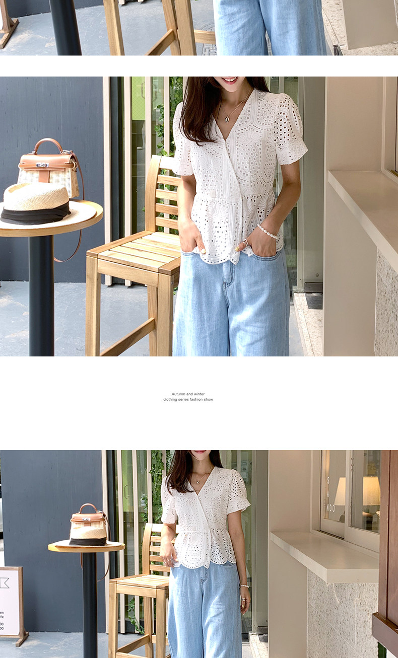 百洛安 Летняя модная рубашка, в корейском стиле, короткий рукав, V-образный вырез
