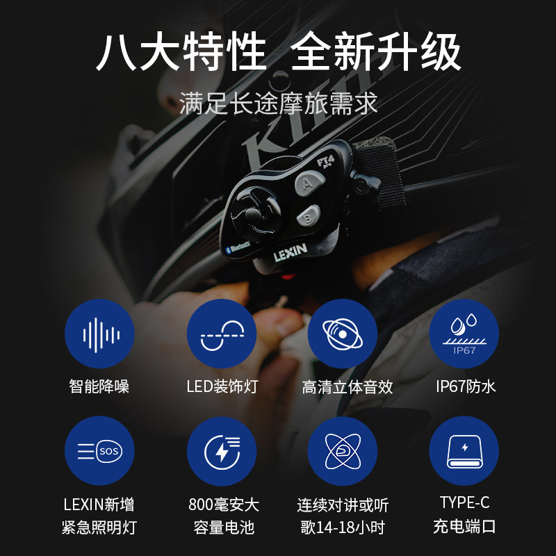 Lexin Motorcycle Motorcycle Hearset Bantan встроенная -Integrated Intercom Wireless Version FT4 Pro Ft4 Pro