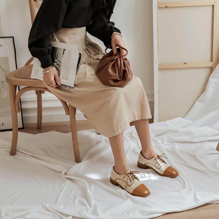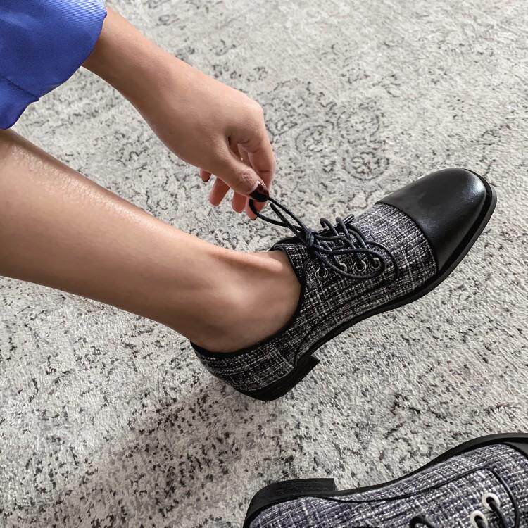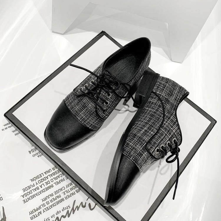 Новая цветовая цветовая линия кружев Женская одиночная обувь маленький размер 30 31 32 33 Большой размер 41-43 Толстая пятка.