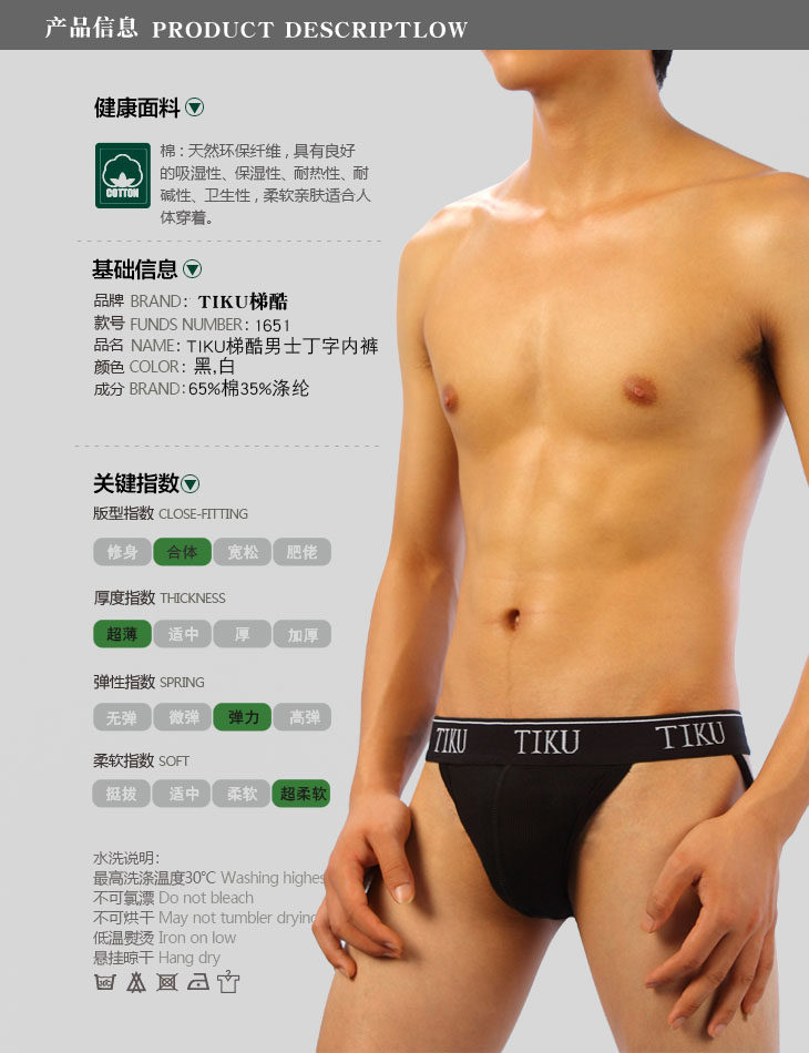 Крутая одежда хлопок сексуальные точки мужские псанды Stereo T -тип Sao мужчины гей -двойные бабки Tiku1651