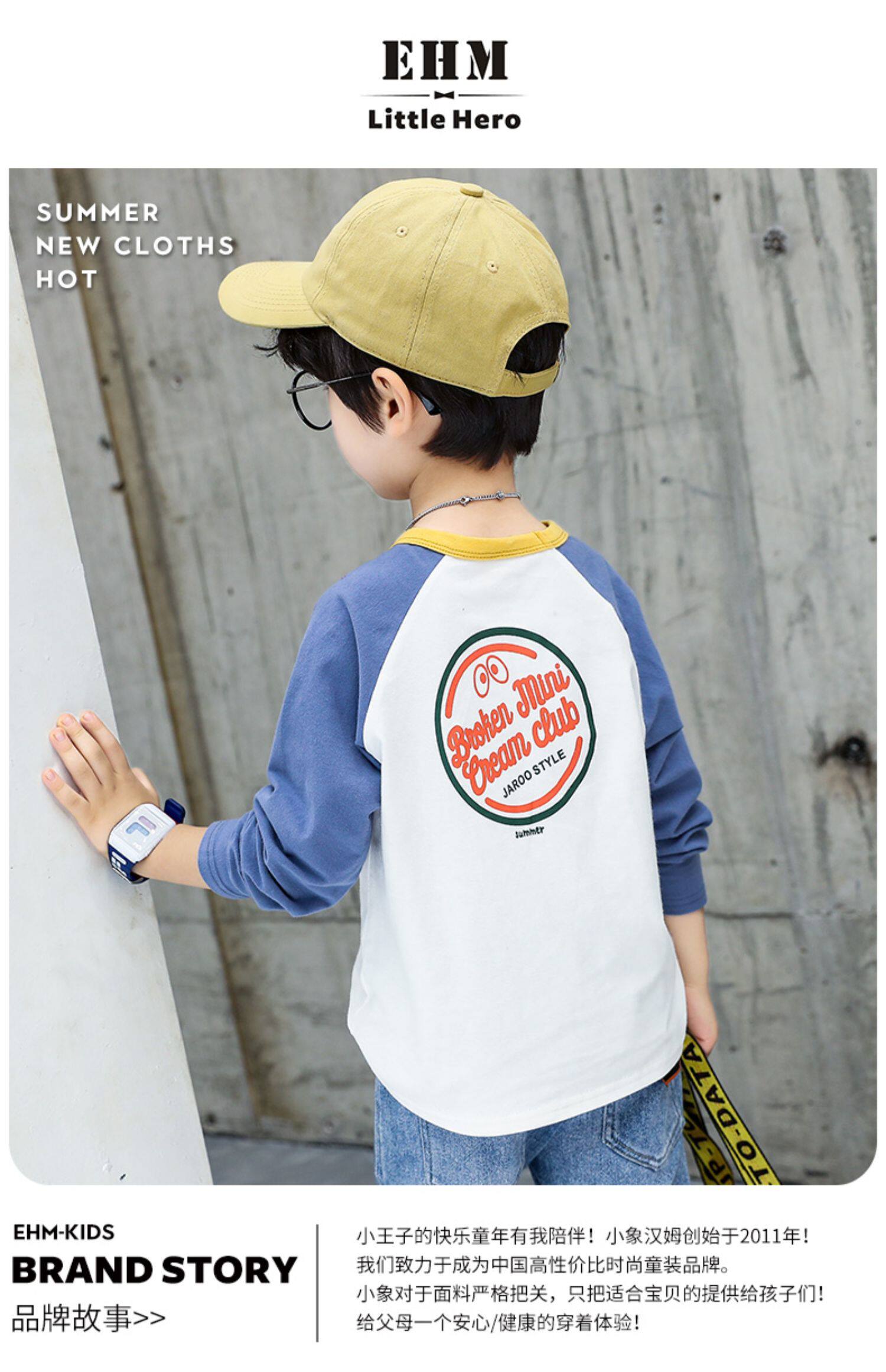 小象汉姆 Летняя одежда, детский весенний базовый приятный телу лонгслив, подходит для подростков, в корейском стиле, в западном стиле