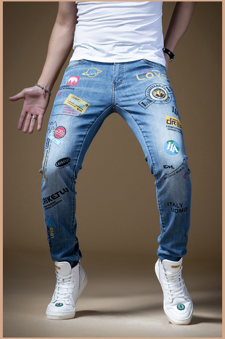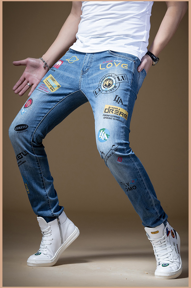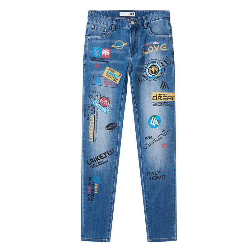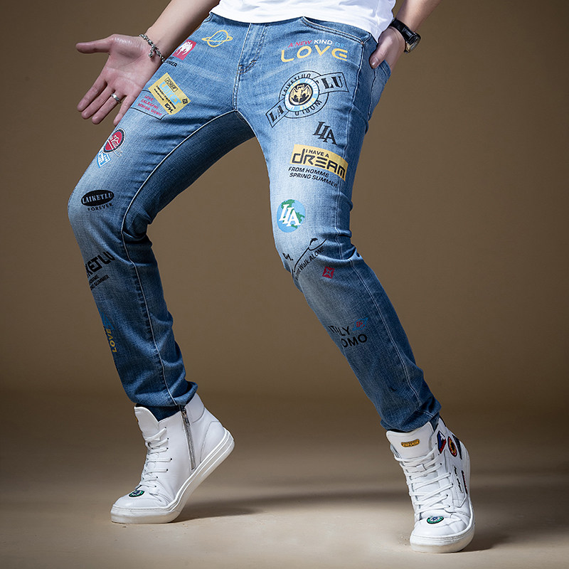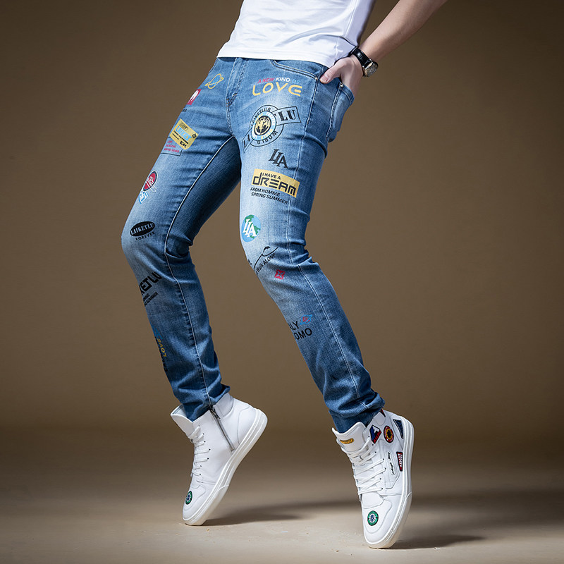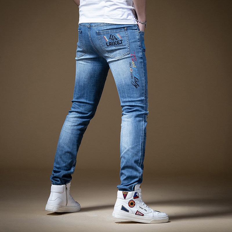 Штаны, синие трендовые универсальные джинсы в стиле хип-хоп, облегающий крой, в корейском стиле