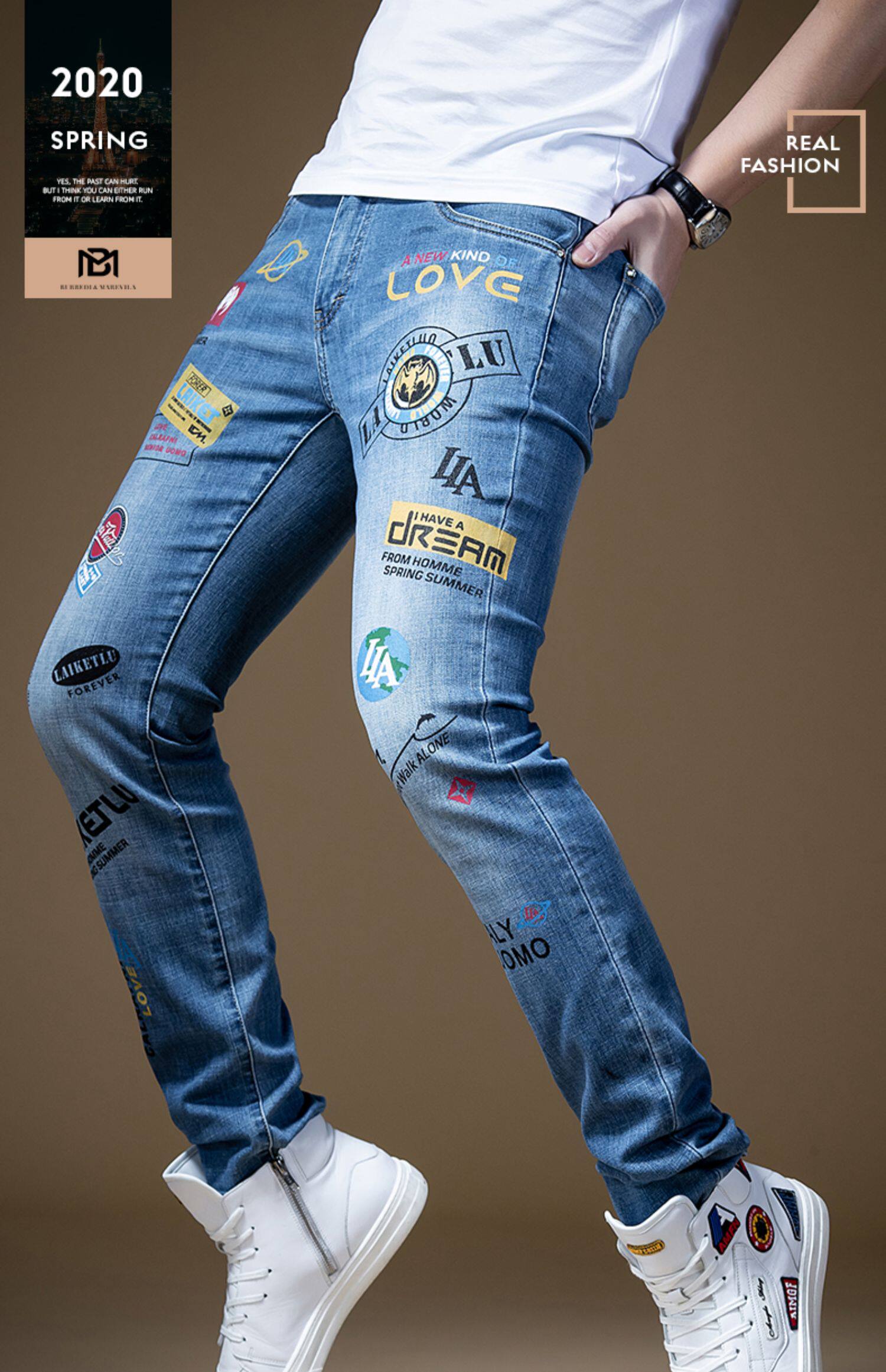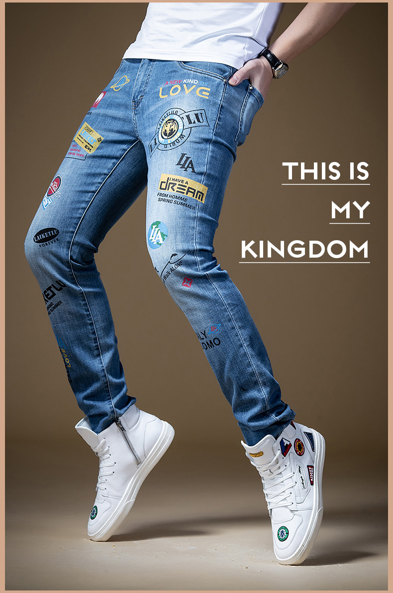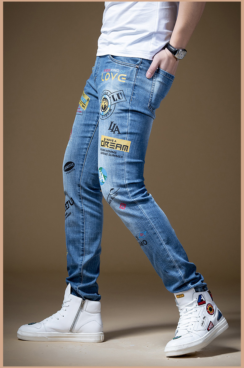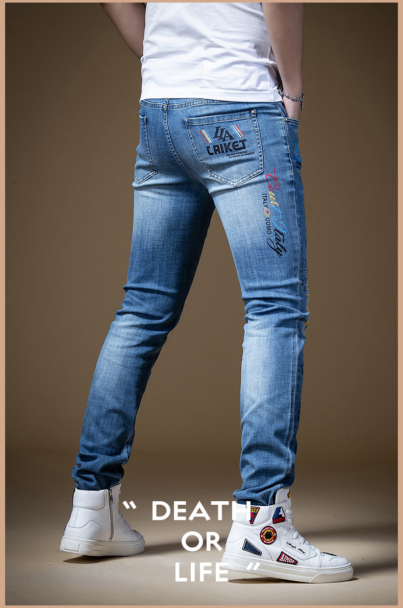 Штаны, синие трендовые универсальные джинсы в стиле хип-хоп, облегающий крой, в корейском стиле