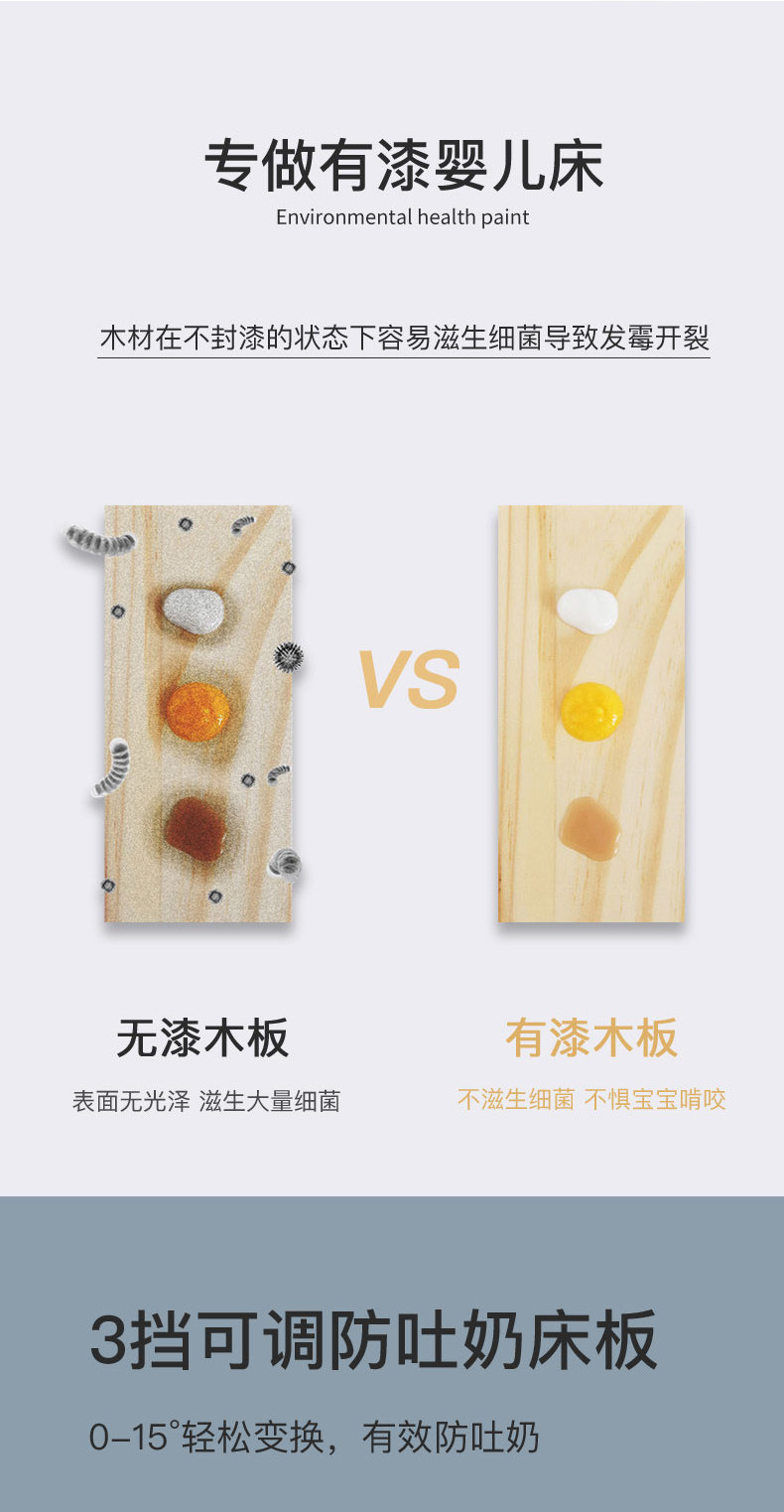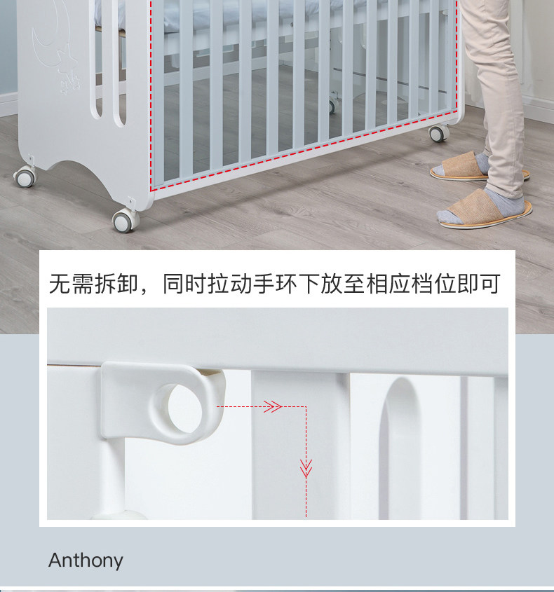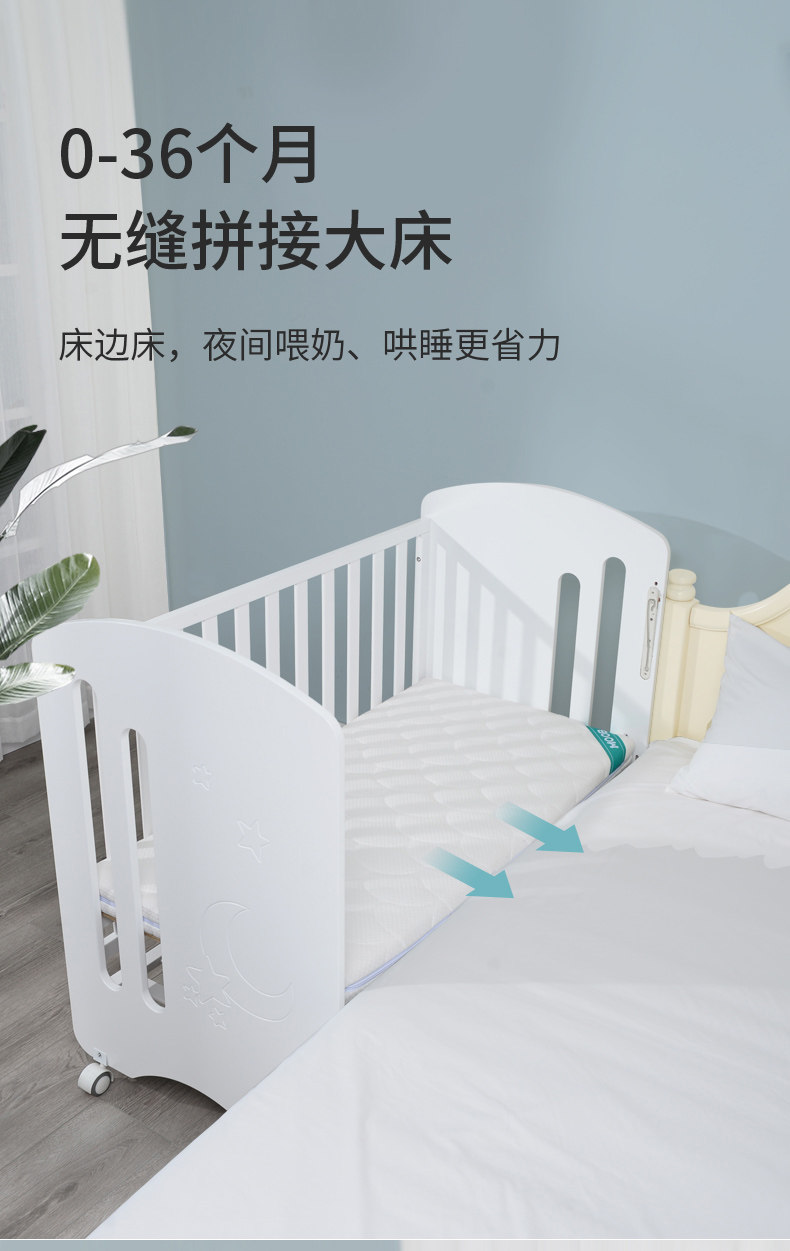 月亮船 Универсальная детская кроватка из натурального дерева для приставной кровати для новорожденных