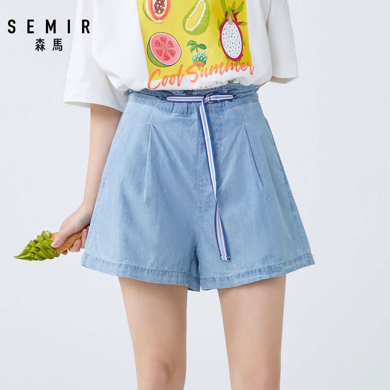 Semir, Tide, джинсовая юбка, шорты, приталенные трендовые летние тонкие штаны, высокая талия, 2020, эластичная талия, свободный крой