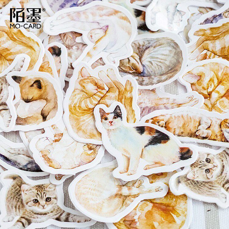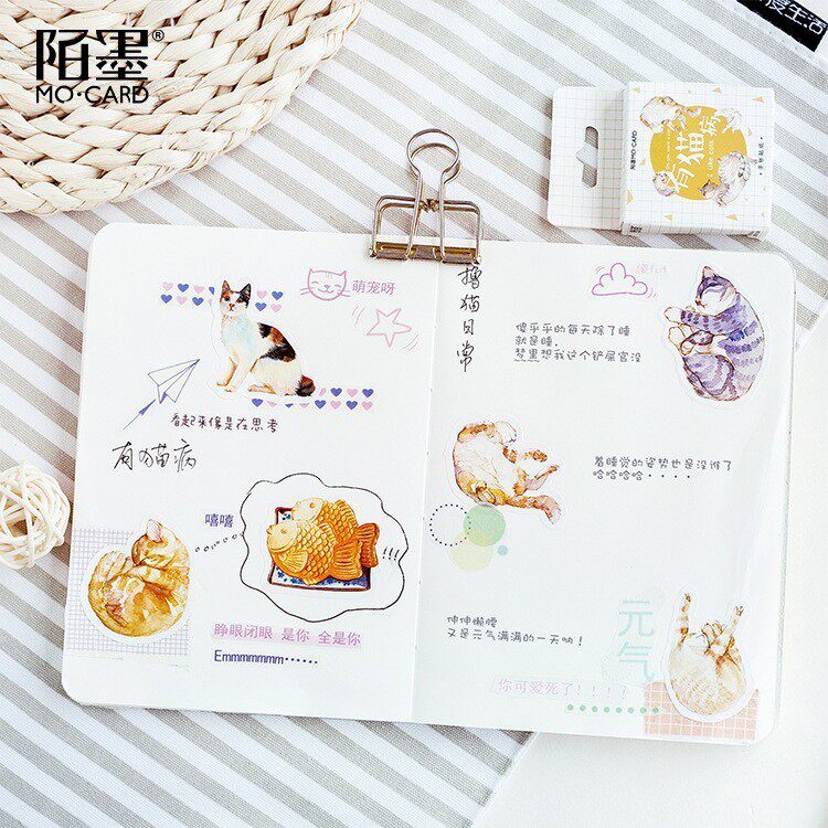 45шт/коробку Новая милая больная кошачья бумага Lable Lable Scileding Sticker