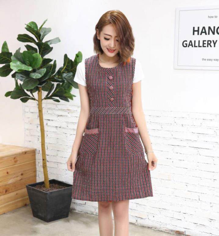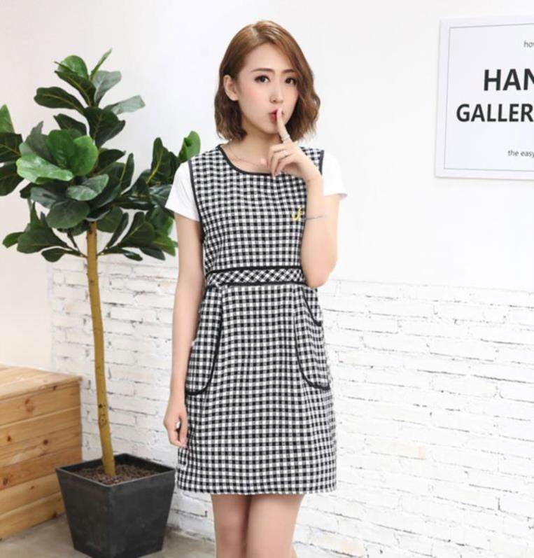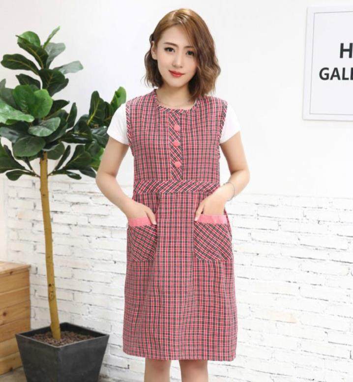 Водонепроницаемый нагрудник, длинный фартук, модная розовая юбка для еды, короткий рукав, с карманом