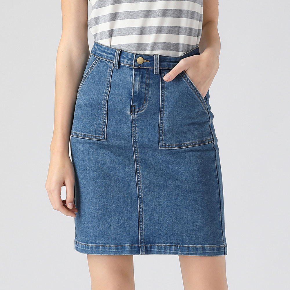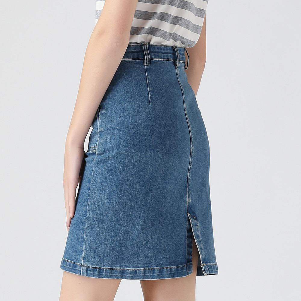 艾米恋 Весенняя приталенная длинная джинсовая юбка, высокая талия, с акцентом на бедрах, длина миди, А-силуэт, облегающий крой