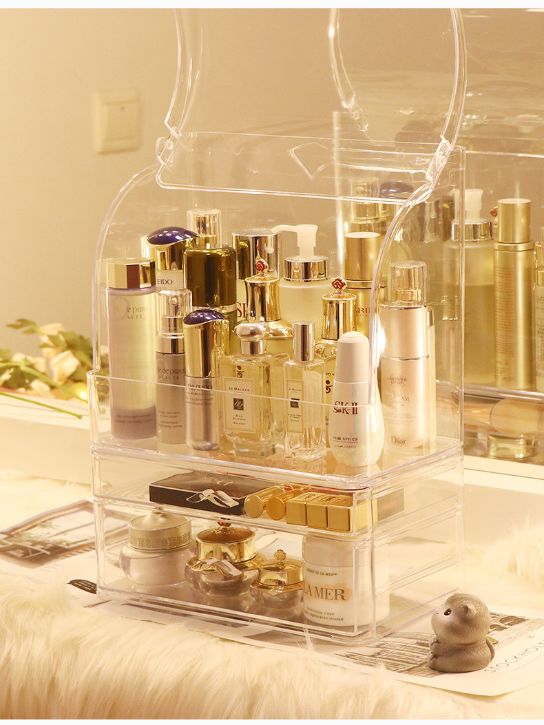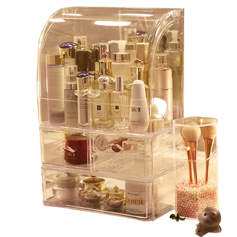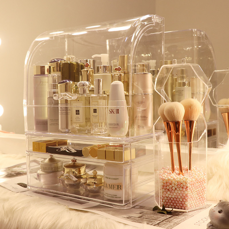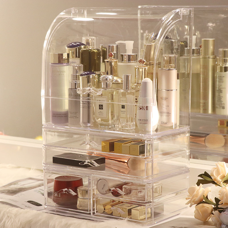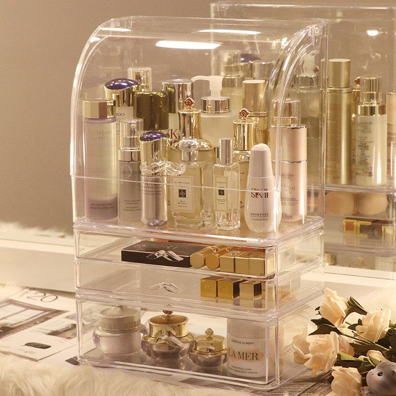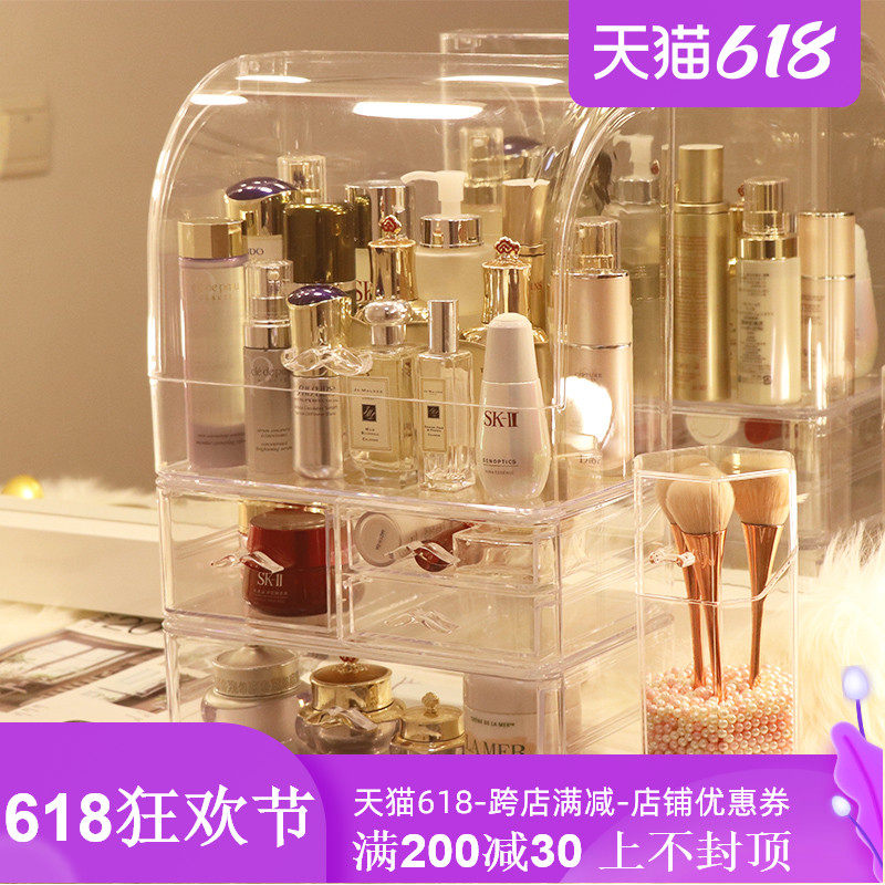 Прозрачная косметическая коробка для хранения, большой туалетный столик для ухода за кожей, настольная помада, популярно в интернете