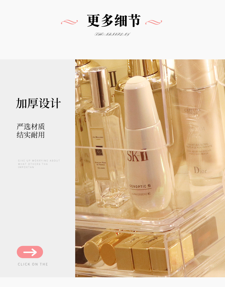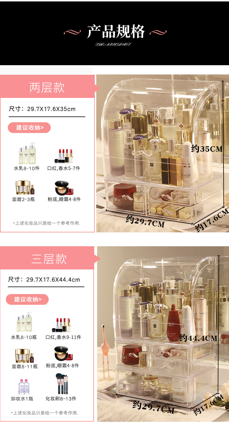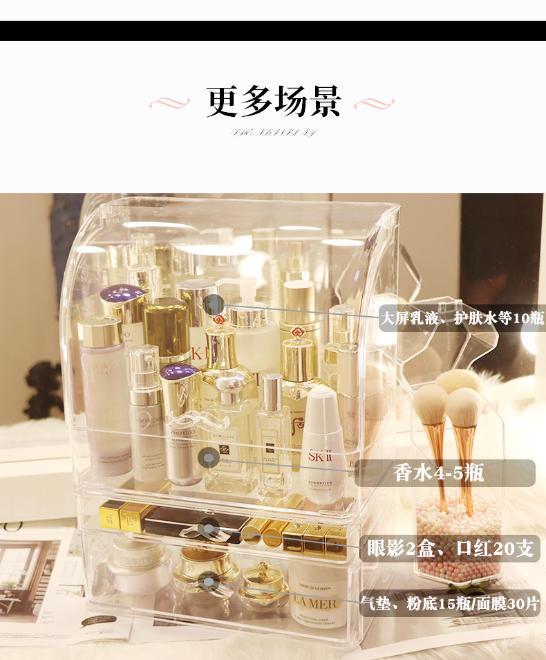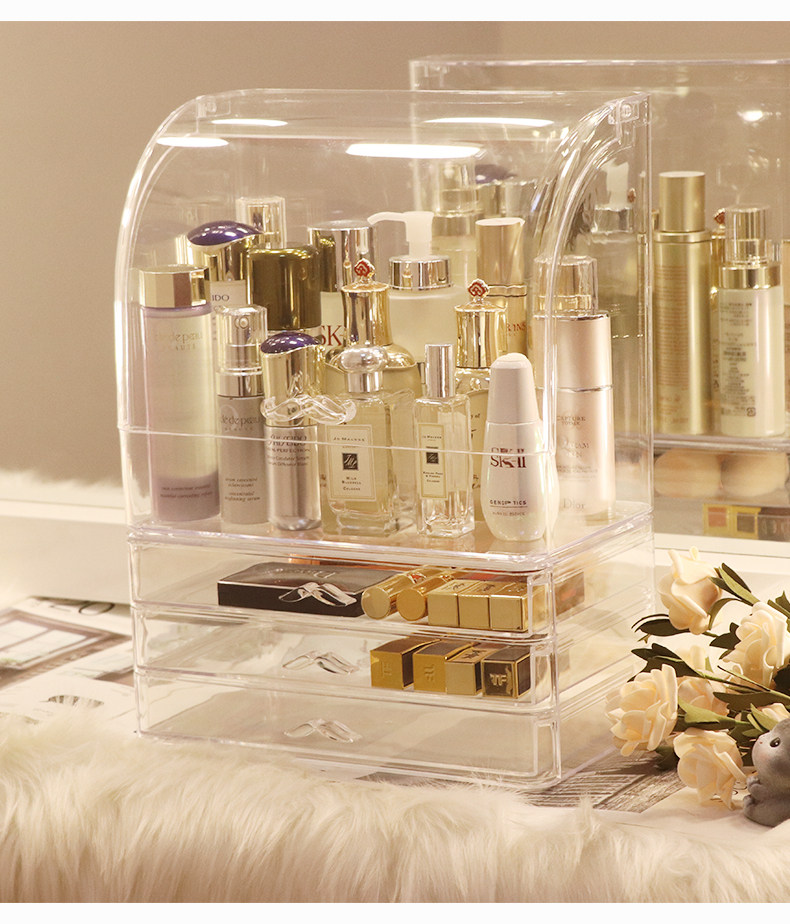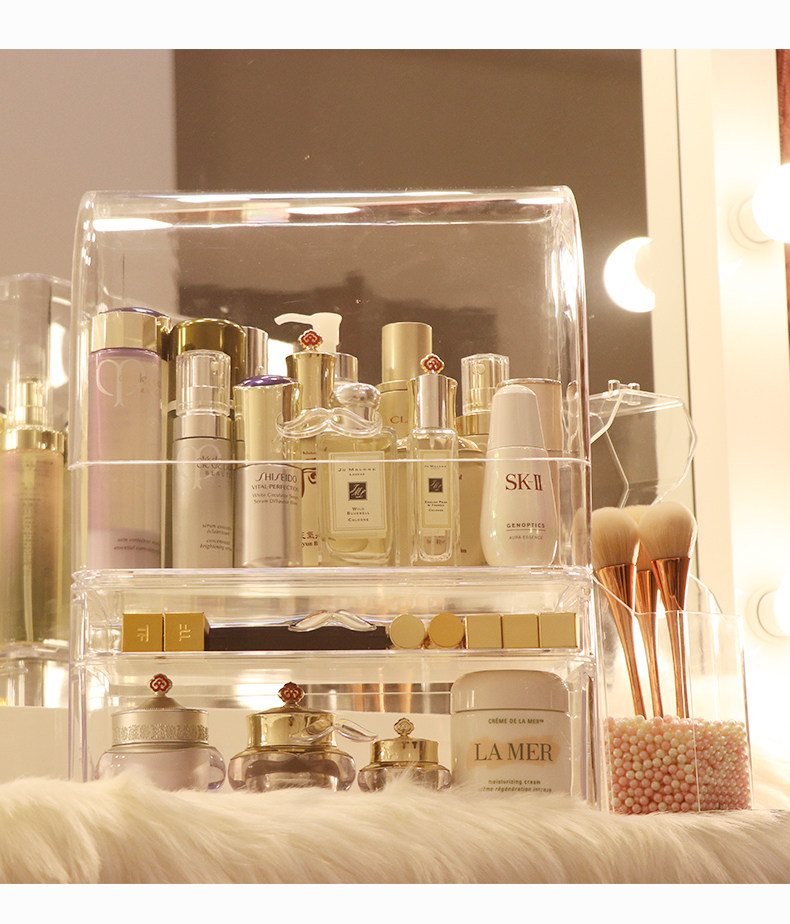 Прозрачная косметическая коробка для хранения, большой туалетный столик для ухода за кожей, настольная помада, популярно в интернете