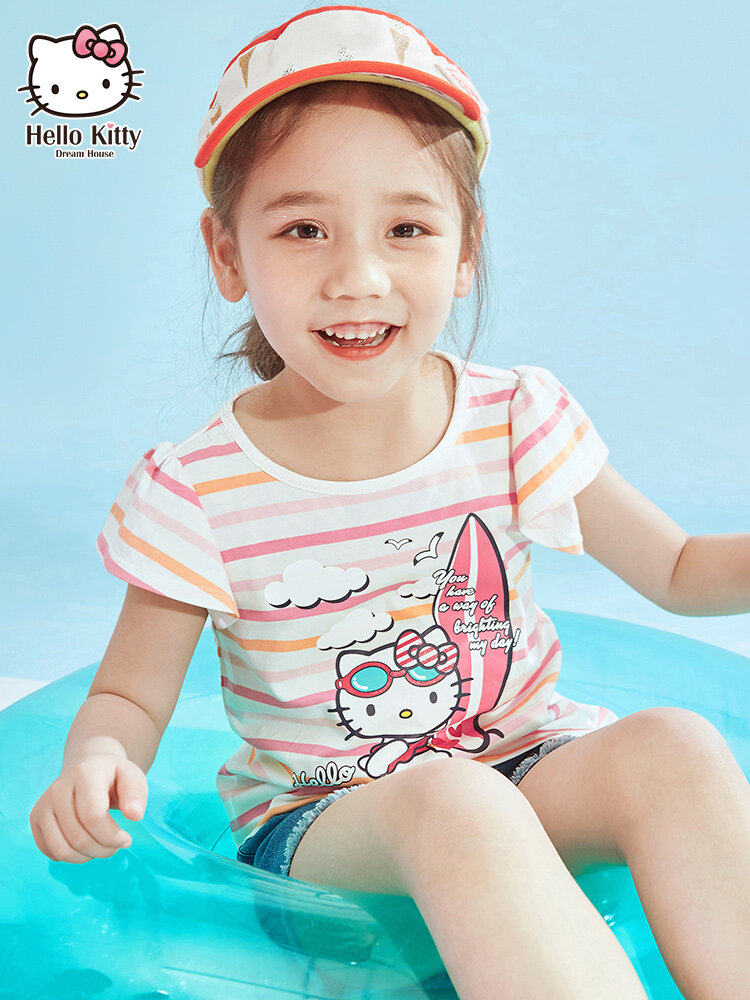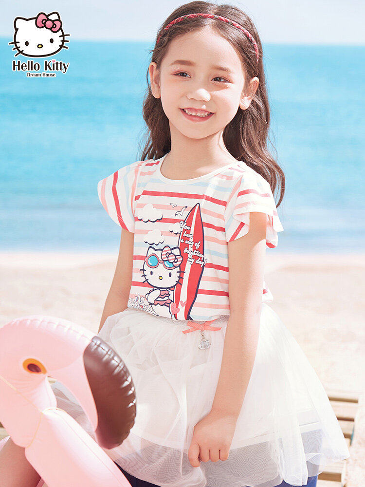 Hello Kitty, мультяшная летняя одежда, детская футболка, детская одежда, 2020, в западном стиле