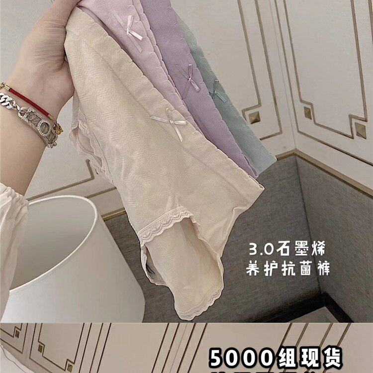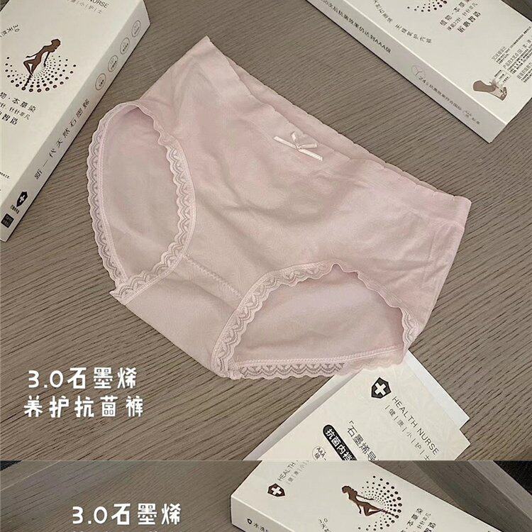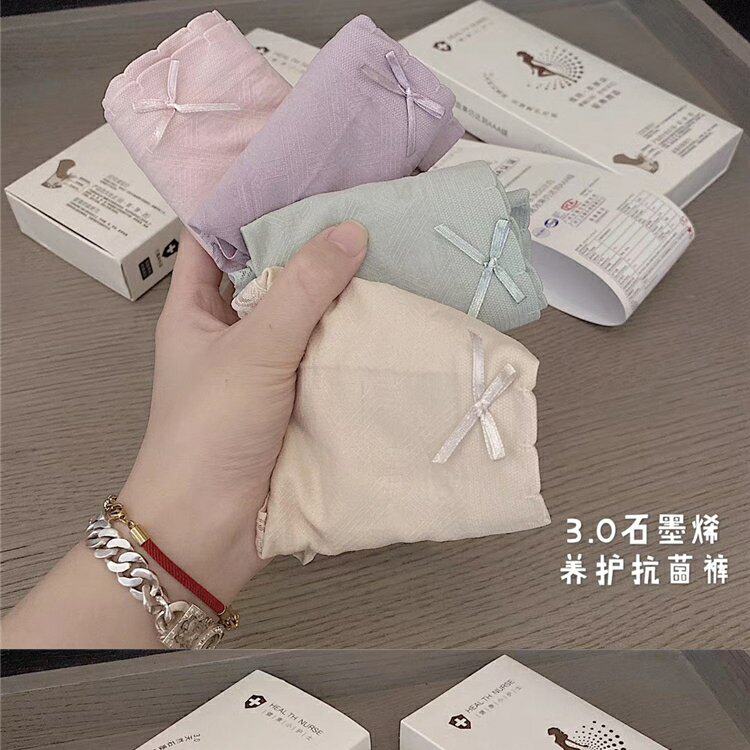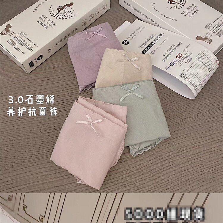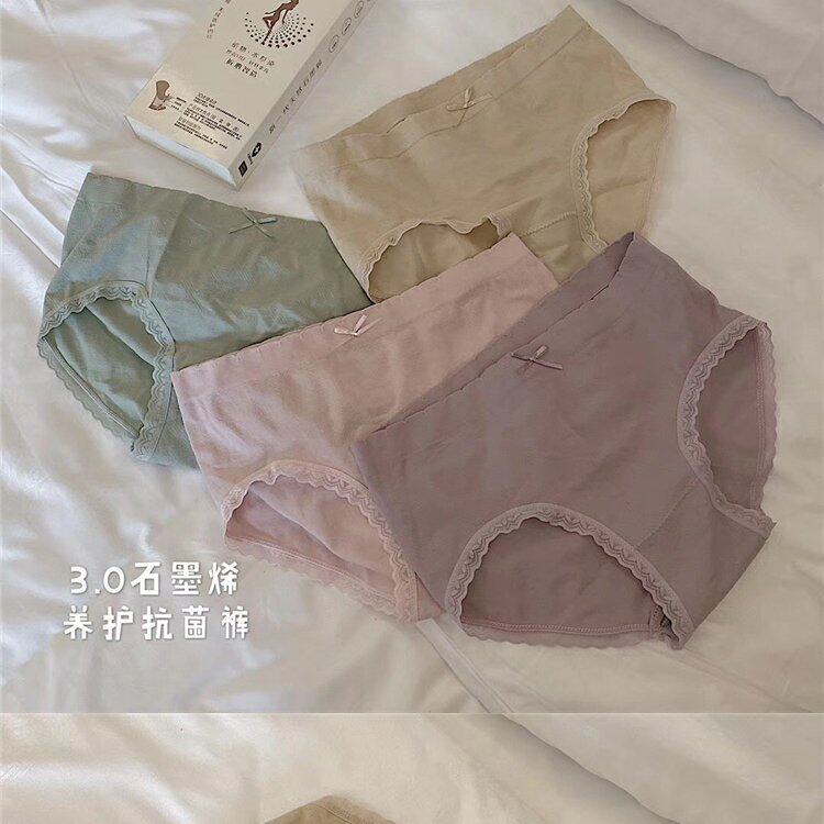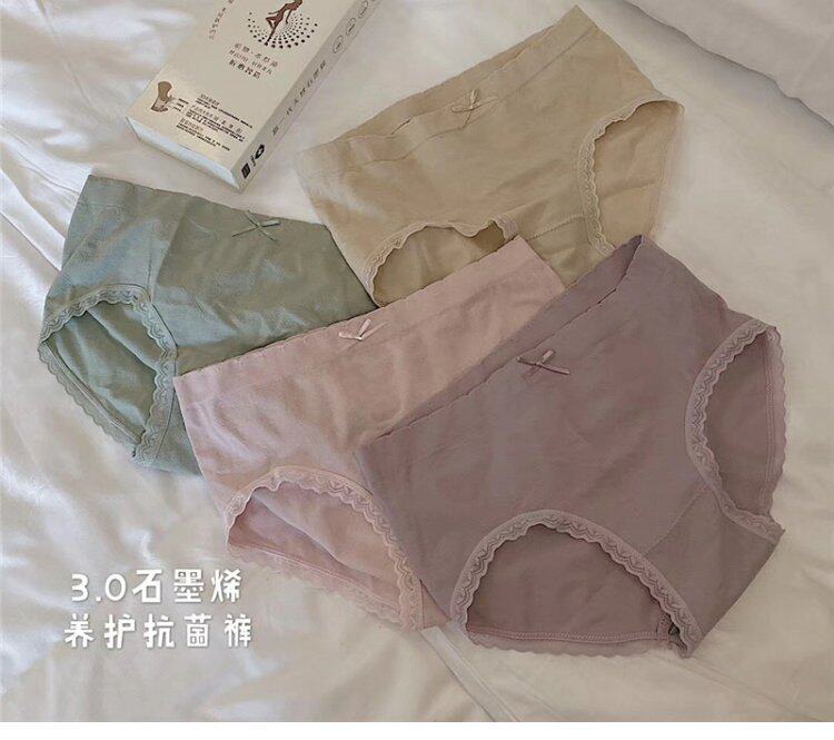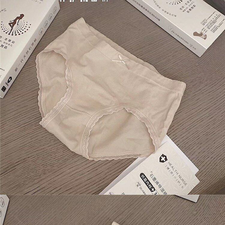 Нижнее белье, антибактериальные хлопковые штаны, кружевные трусы с бантиком, средняя посадка