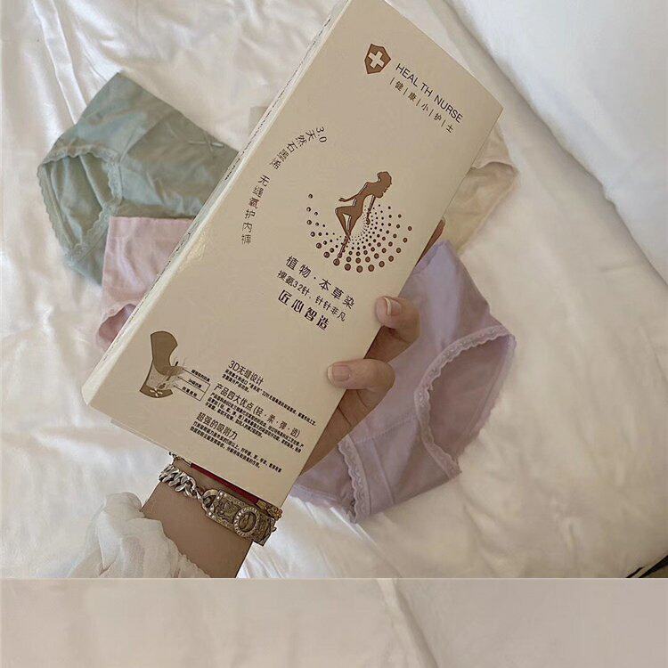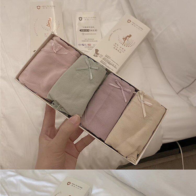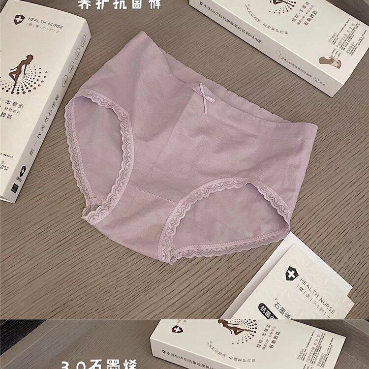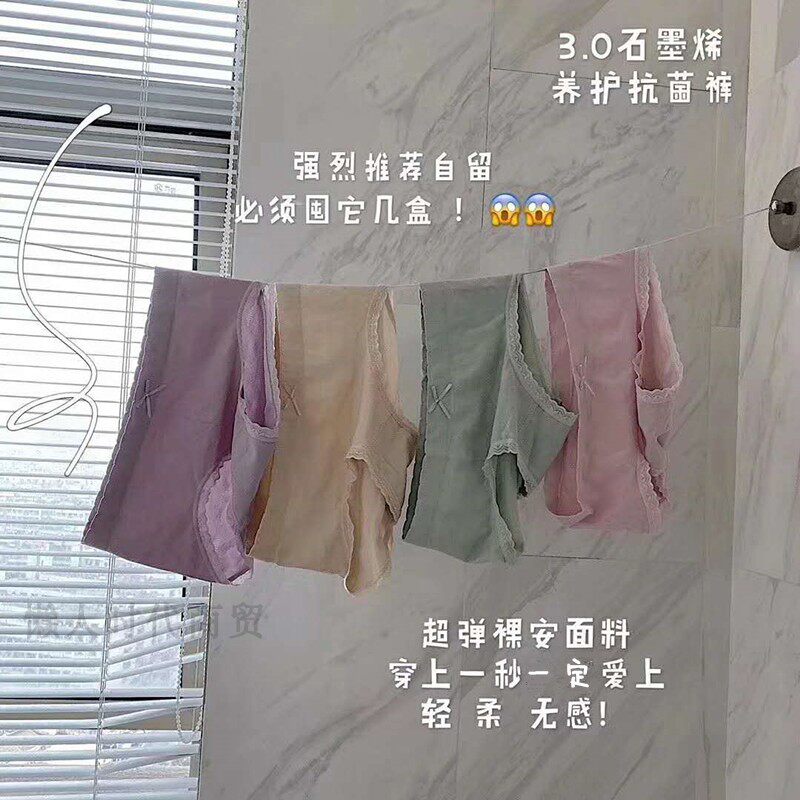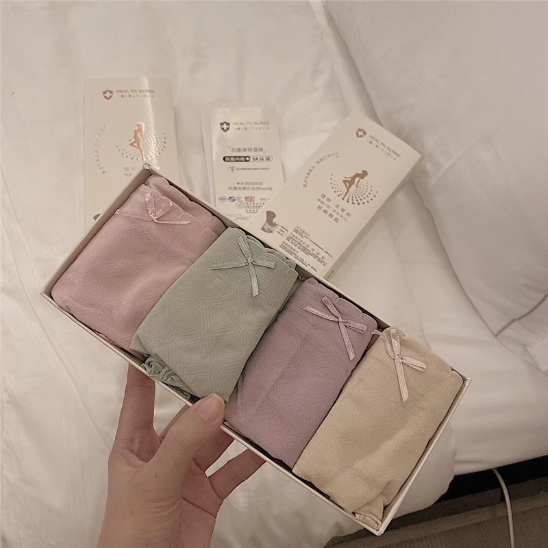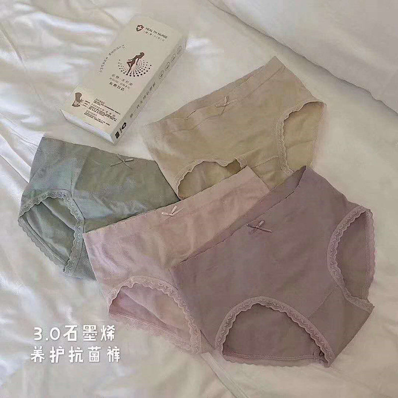 Нижнее белье, антибактериальные хлопковые штаны, кружевные трусы с бантиком, средняя посадка