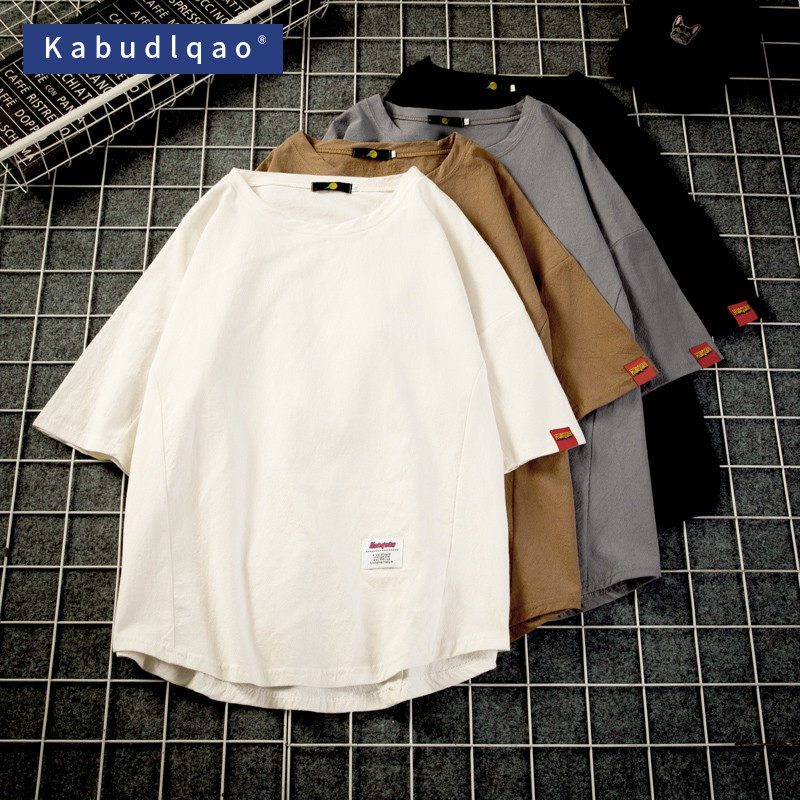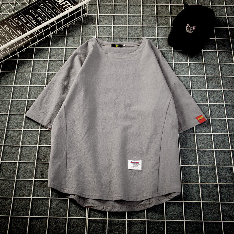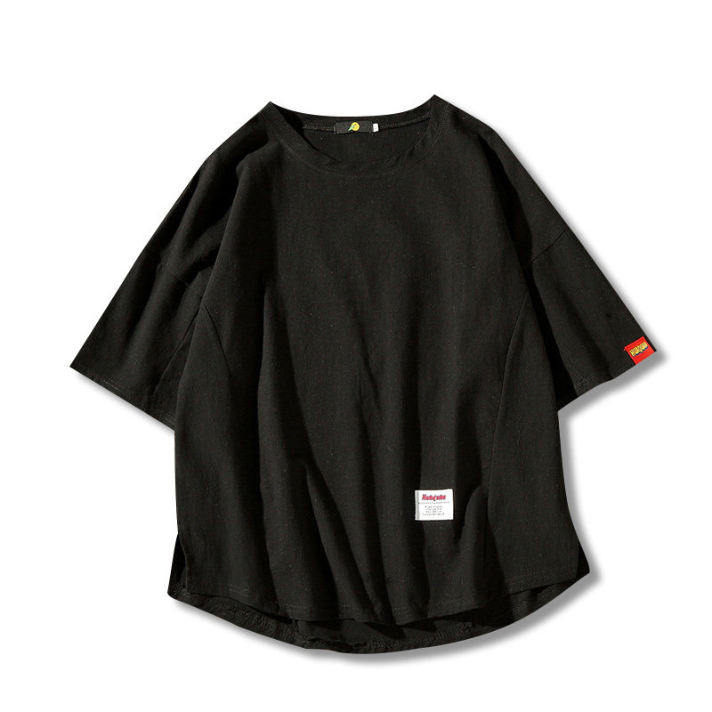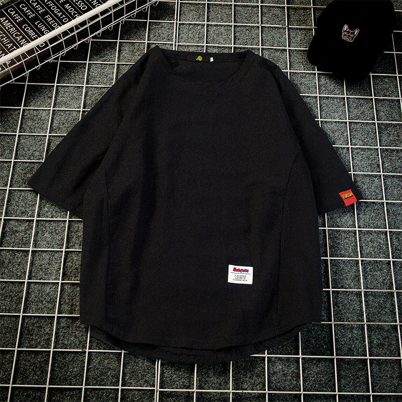 Японская базовая приятная телу трендовая футболка с коротким рукавом, короткий рукав, большой размер, свободный крой, из хлопка и льна