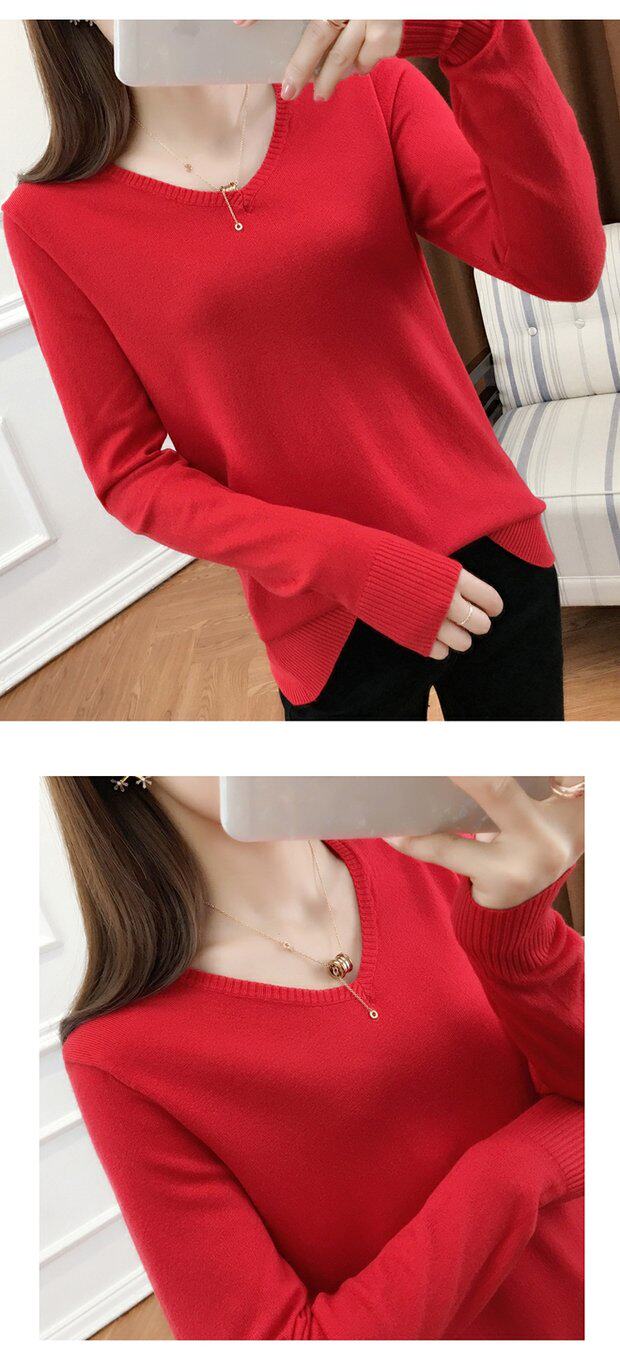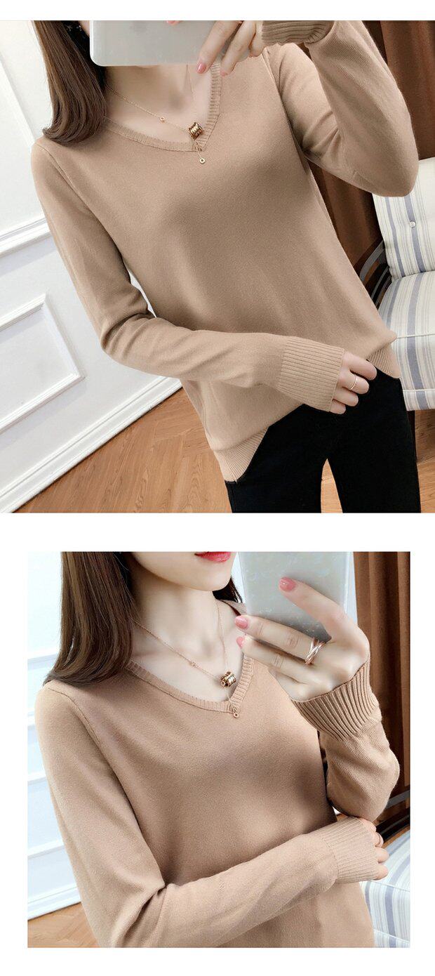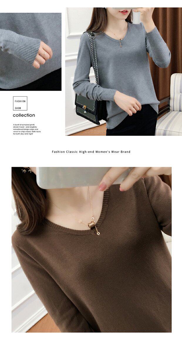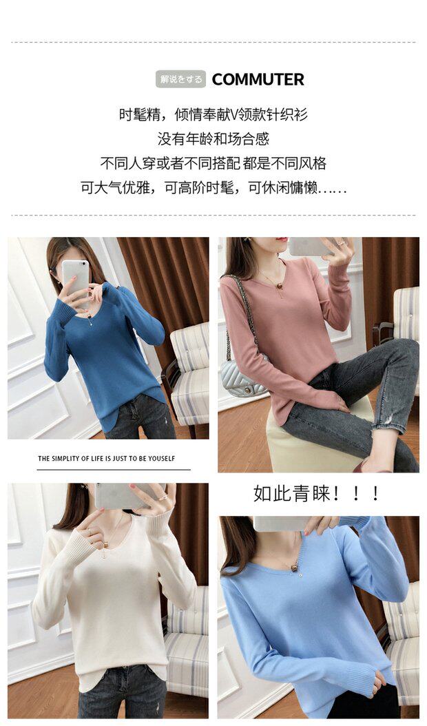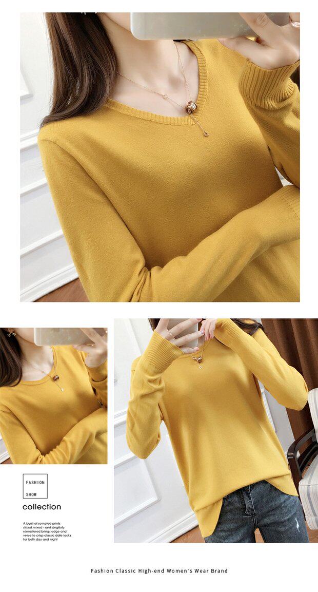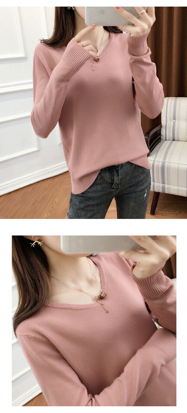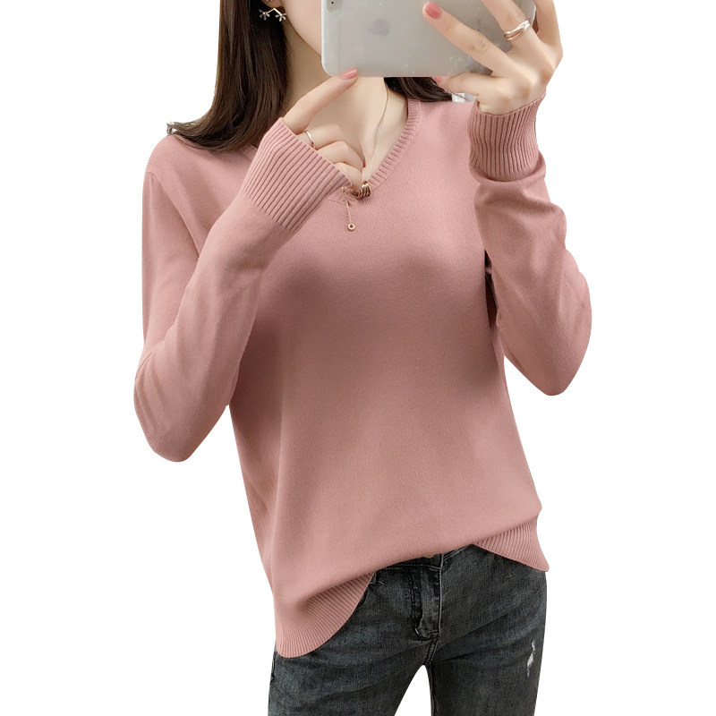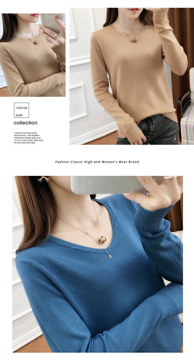 Осенний шерстяной демисезонный свитер, трикотажная кашемировая рубашка с круглым воротником, 2020, V-образный вырез