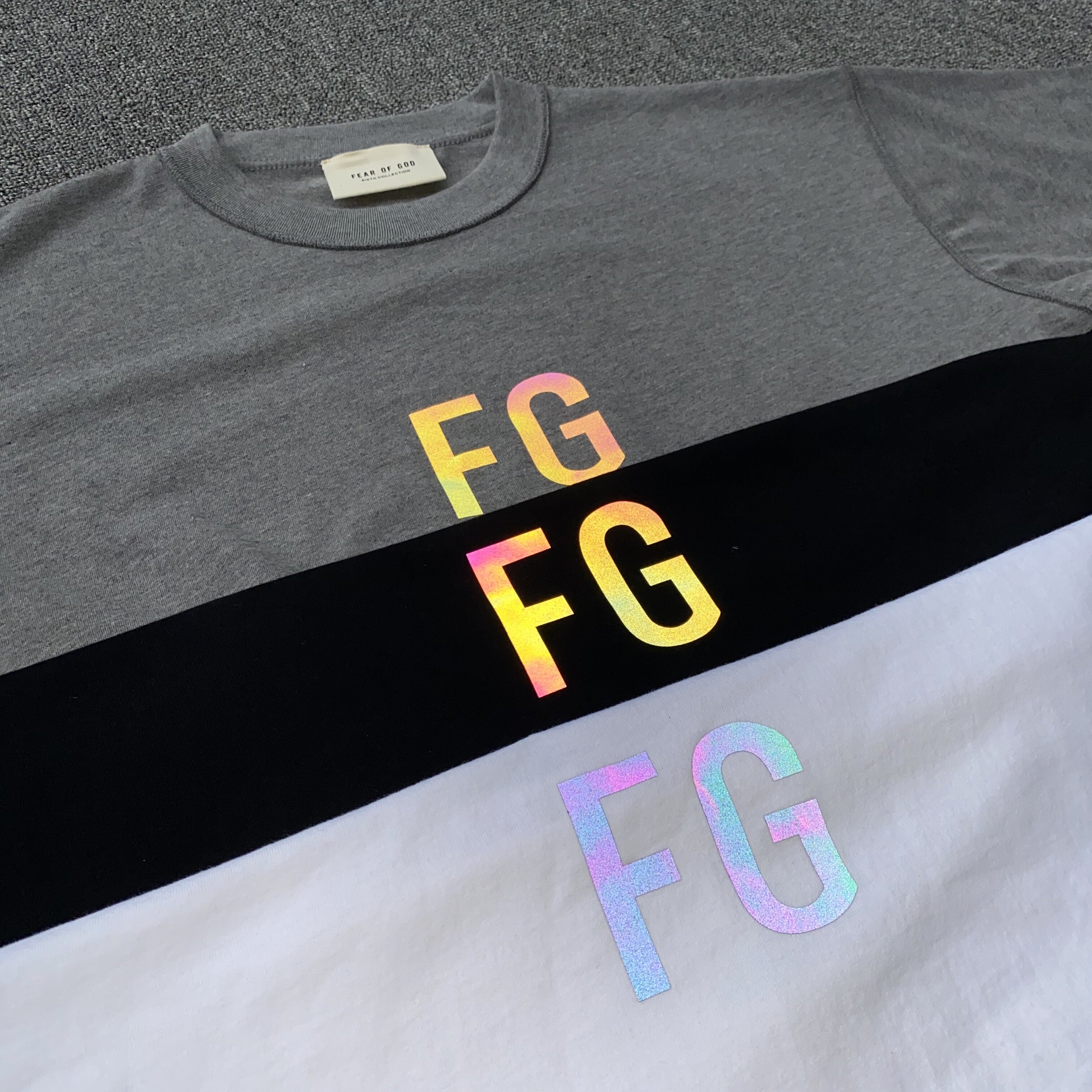 Страх перед богом, сезон 6, основная линия, лазерная светоотражающая футболка FG, богатая футболка FOG, модные яркие буквы с короткими рукавами