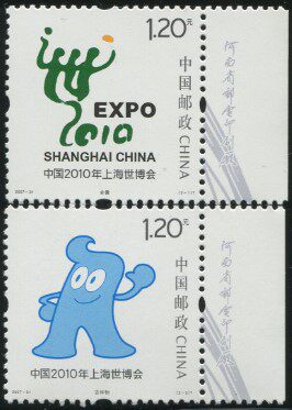 2007-31 гг., Китай, 2010 г., эмблема Всемирной выставки в Шанхае и надпись на правом талисмане фабрики.