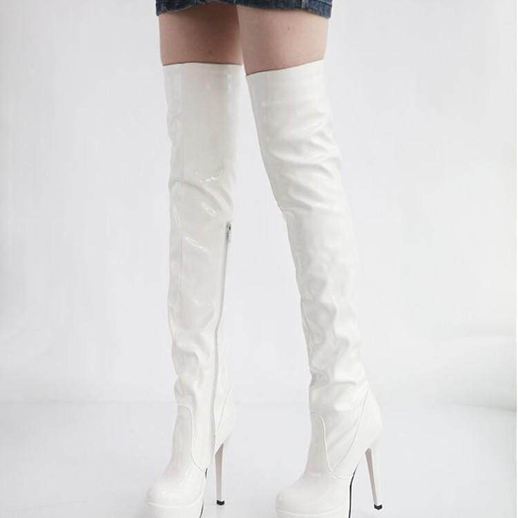 Сапоги для ночного клуба, одинарные сапоги, водонепроницаемые сапоги на высоком каблуке и платформе для танцев на шесте, лакированные кожаные сапоги выше колена, большие размеры, яркие кожаные рыцарские сапоги, размер 40-43