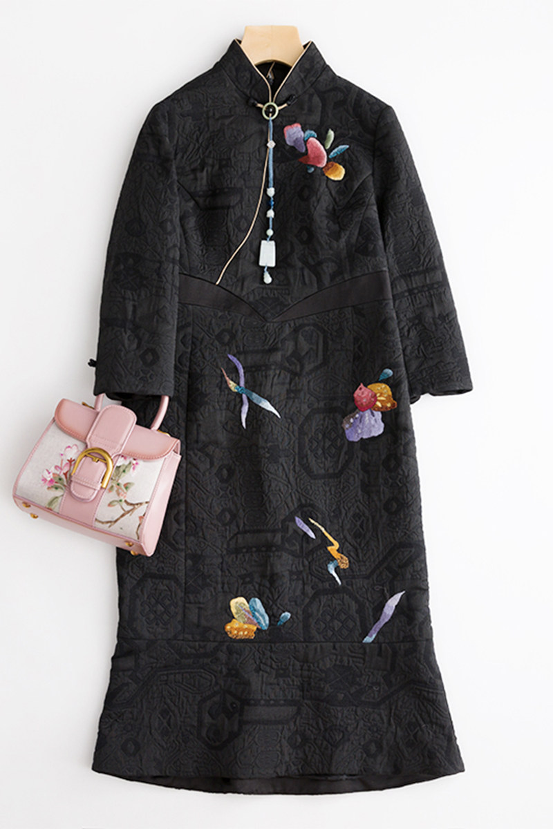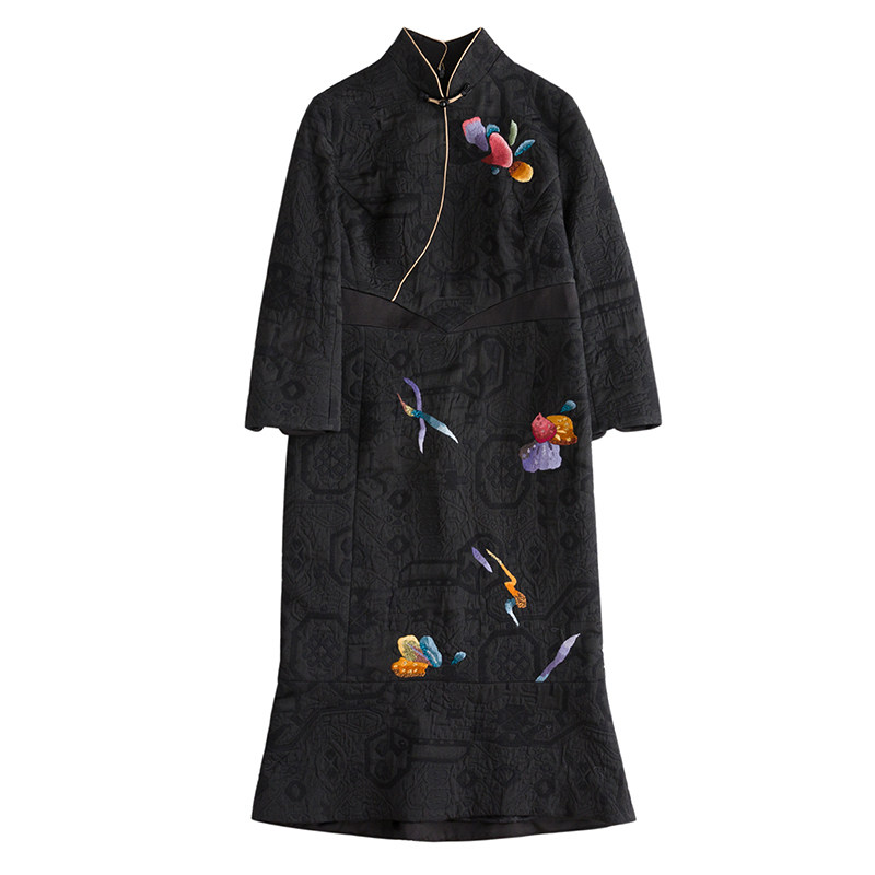 ZDX180 купить две безвременные роскошные линии чистой вышивки ручной работы, расцветающая элегантная небольшая рыбная хвост осень и зимние платья.